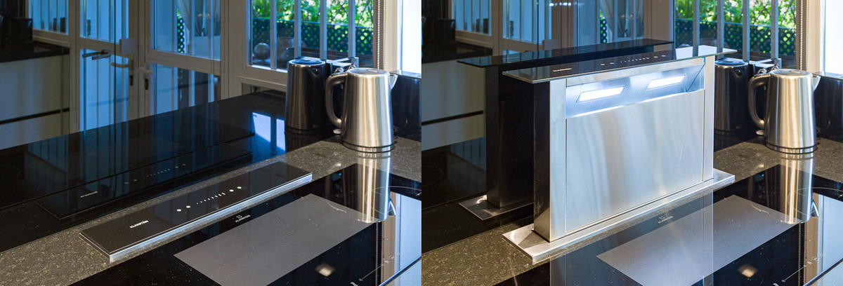 Open modern kitchen with all top-quality equipment (dishwasher, 2 fridges, oven, induction hob, modern steam extractor, microwave and etc.), bar zone, decorated LED lighting.