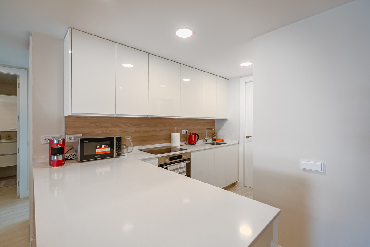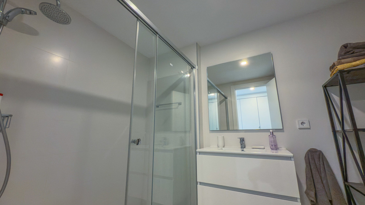 Les finitions et les matériaux de l'appartement reflètent une qualité supérieure, avec des sols en grès cérame, une menuiserie laquée blanche, une climatisation canalisée chaude et froide, un système aérothermique économe en énergie et de spacieuses armoires encastrées.