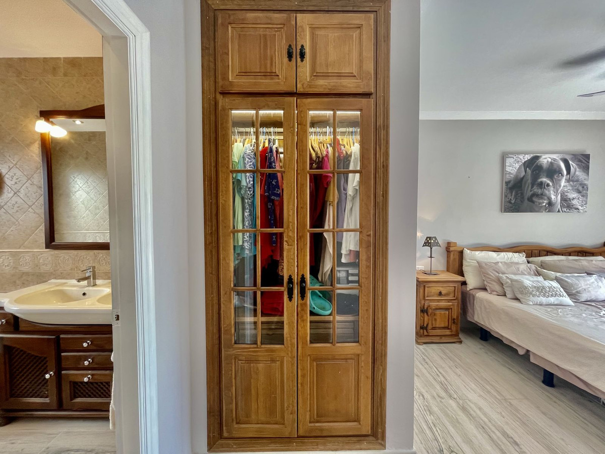 Il y a trois chambres qui partagent deux salles de bain complètes, toutes équipées de placards intégrés. La suite parentale est bien proportionnée avec un grand dressing et une salle de bain attenante. Chaque chambre est équipée de la climatisation ou d'un ventilateur de plafond si vous préférez une option plus économe en énergie.