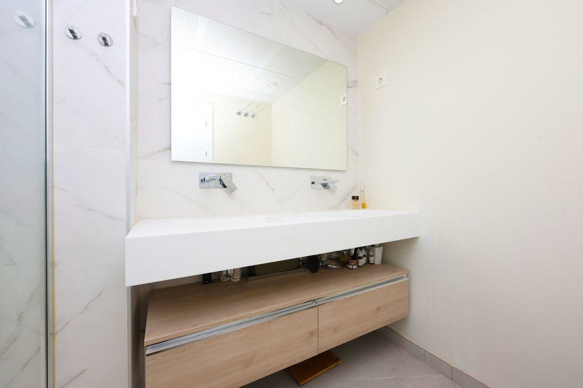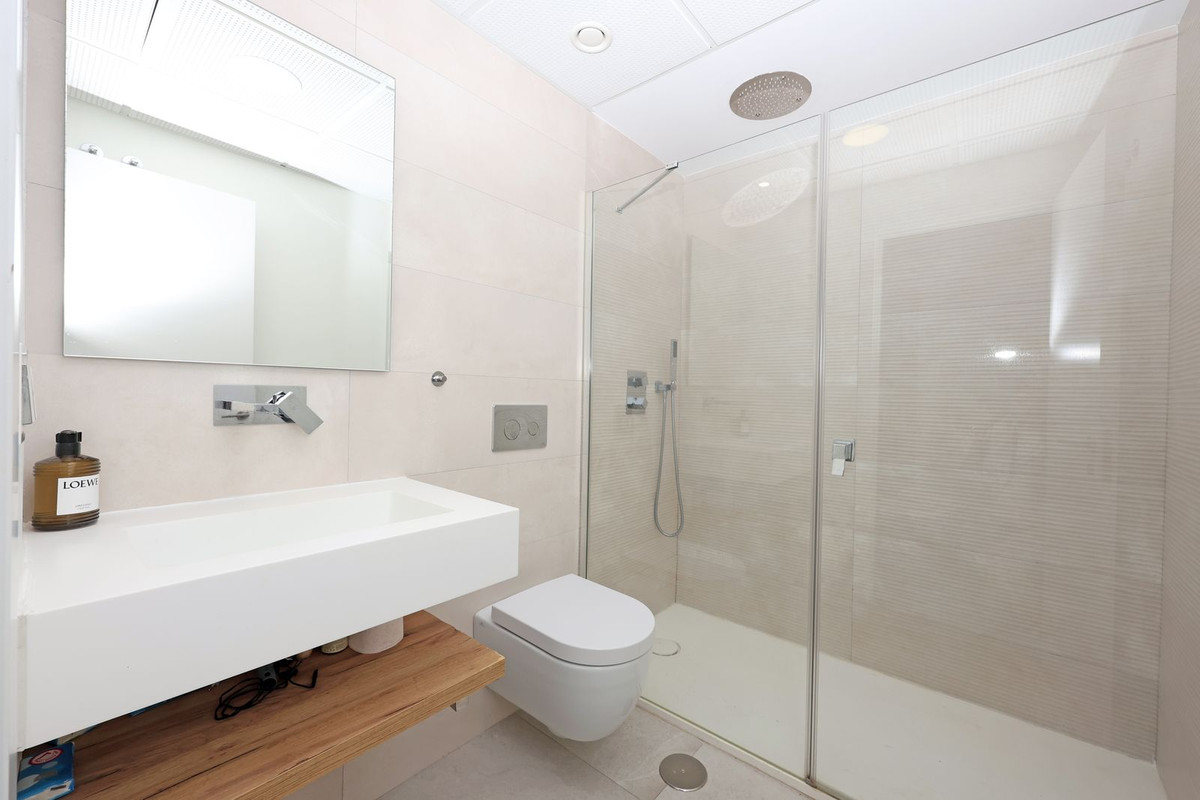 La propriété comprend deux chambres spacieuses, dont une spacieuse suite parentale avec salle de bains privative, ainsi qu'une élégante cuisine entièrement équipée, équipée d'électroménagers Bosch haut de gamme. Le séjour lumineux et ouvert donne sur une terrasse exposée ouest, d'où vous pourrez profiter d'une vue dégagée et de couchers de soleil spectaculaires.