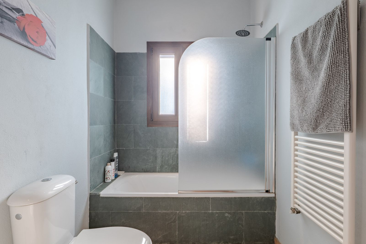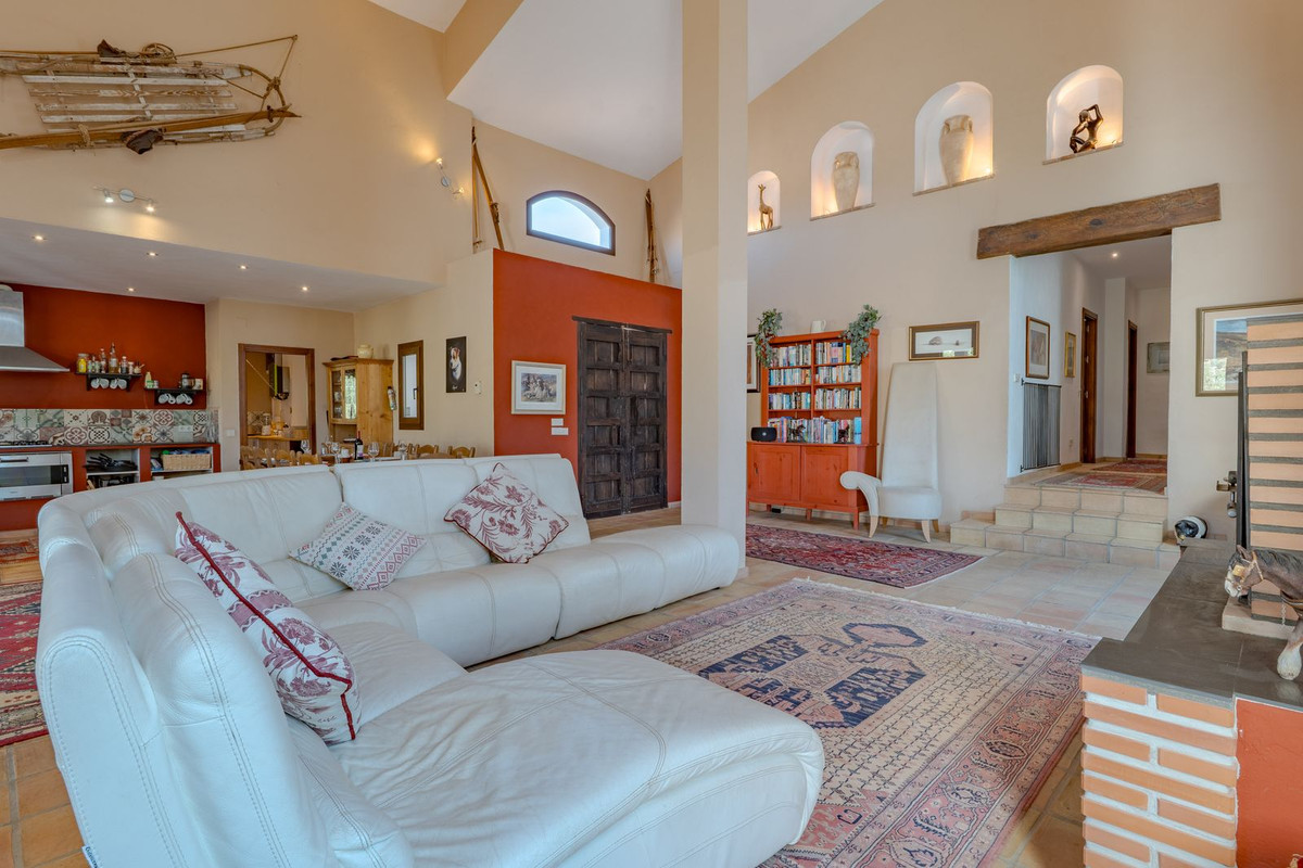 Hauts plafonds et grandes fenêtres : ces éléments architecturaux offrent un maximum de lumière naturelle tout au long de la journée et accentuent la sensation d'espace. Profitez de la chaleur de la cheminée lors des soirées plus fraîches, entourée de charmants sols en terre cuite et de la belle porte d'entrée en bois espagnol qui souligne l'atmosphère champêtre.