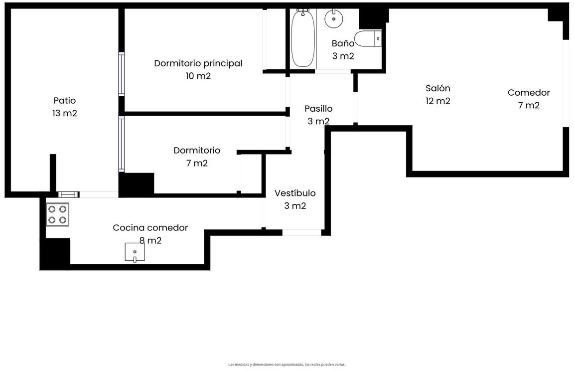 Private interior patio, ideal as a laundry area or small relaxation corner (moderate natural light due to its interior orientation).