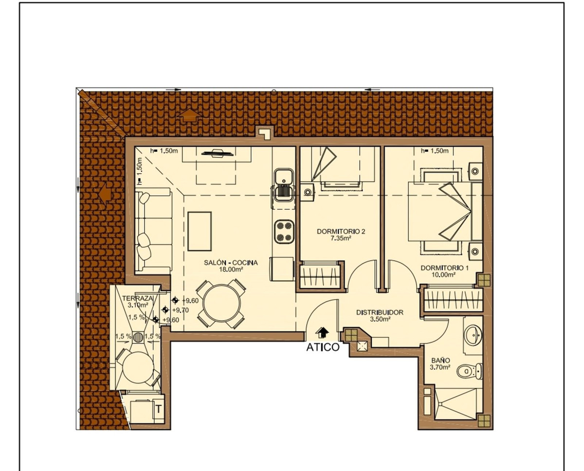 Penthouse au coeur de Los Boliches, à quelques mètres de la plage et de la gare de train de banlieue.