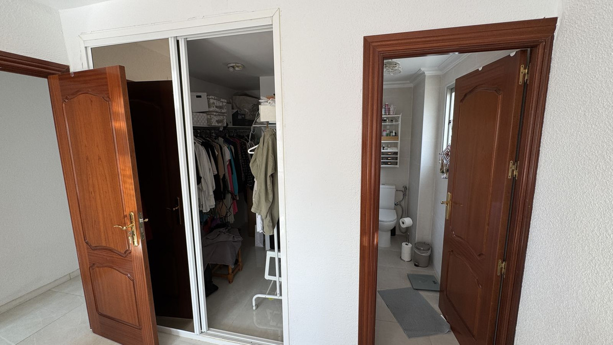 Grâce à son orientation sud, la propriété bénéficie d'une excellente luminosité naturelle tout au long de la journée. Les trois chambres donnent sur l'extérieur. Le salon et les chambres offrent une vue dégagée sur la Plaza Hispanidad et Fuengirola, conférant à la maison une impression d'espace et de hauteur. Le salon offre également une vue partielle sur la mer. Une terrasse privée exposée sud offre un espace de détente ou de réception idéal.