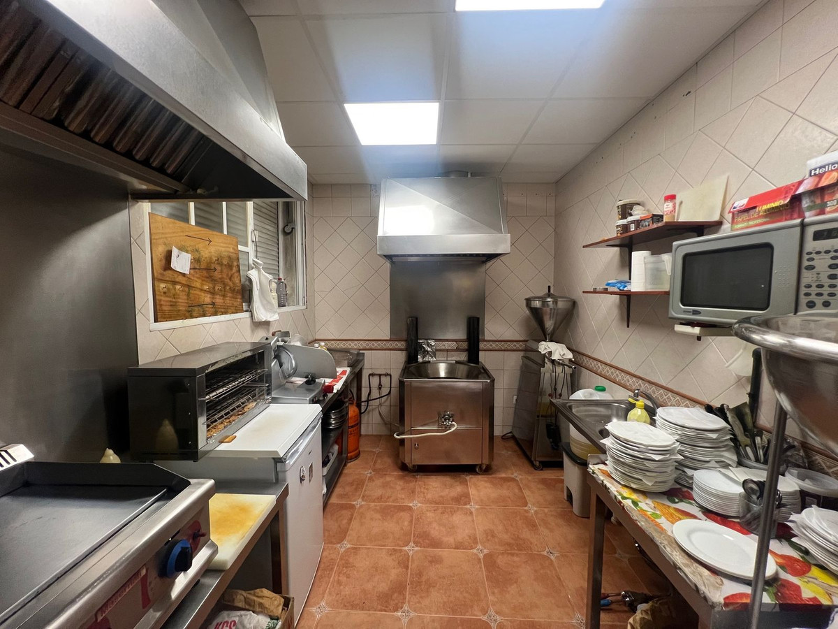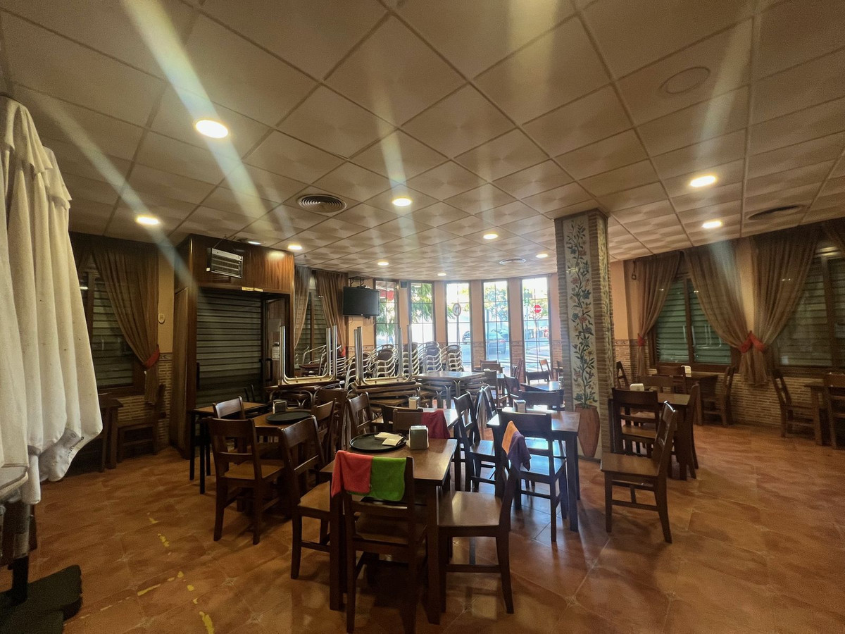 Commercial premises and residential property for sale in the Avenida Andalucita area of Estepona. The commercial premises measure 125 square metres and are currently used as a café and churros shop. The upper floor is a 210-square-metre residential property with a 200-square-metre terrace, ideal for converting into an apartment or rental accommodation. The business has been operating for over 20 years and has a loyal customer base.