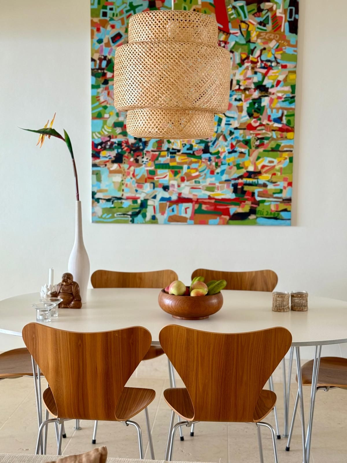 The interior design is tasteful and timeless, featuring classic Danish designer furniture that enhances the apartment’s exclusive and inviting atmosphere.