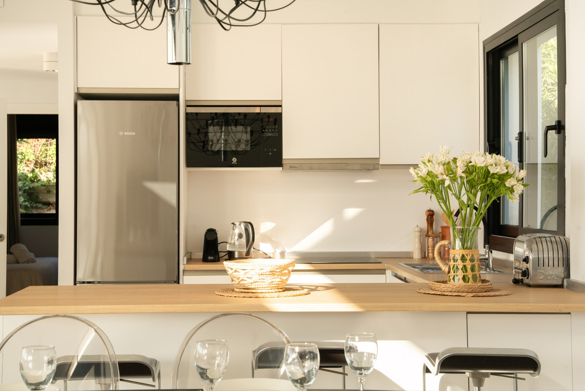 À l'extérieur, une piscine privée et un jardin paysager créent une atmosphère relaxante, agrémentée de plantes fleuries qui apportent de la couleur tout au long de l'année et confèrent à la propriété une agréable atmosphère printanière. Plusieurs terrasses offrent des espaces idéaux pour dîner ou passer du temps en plein air.