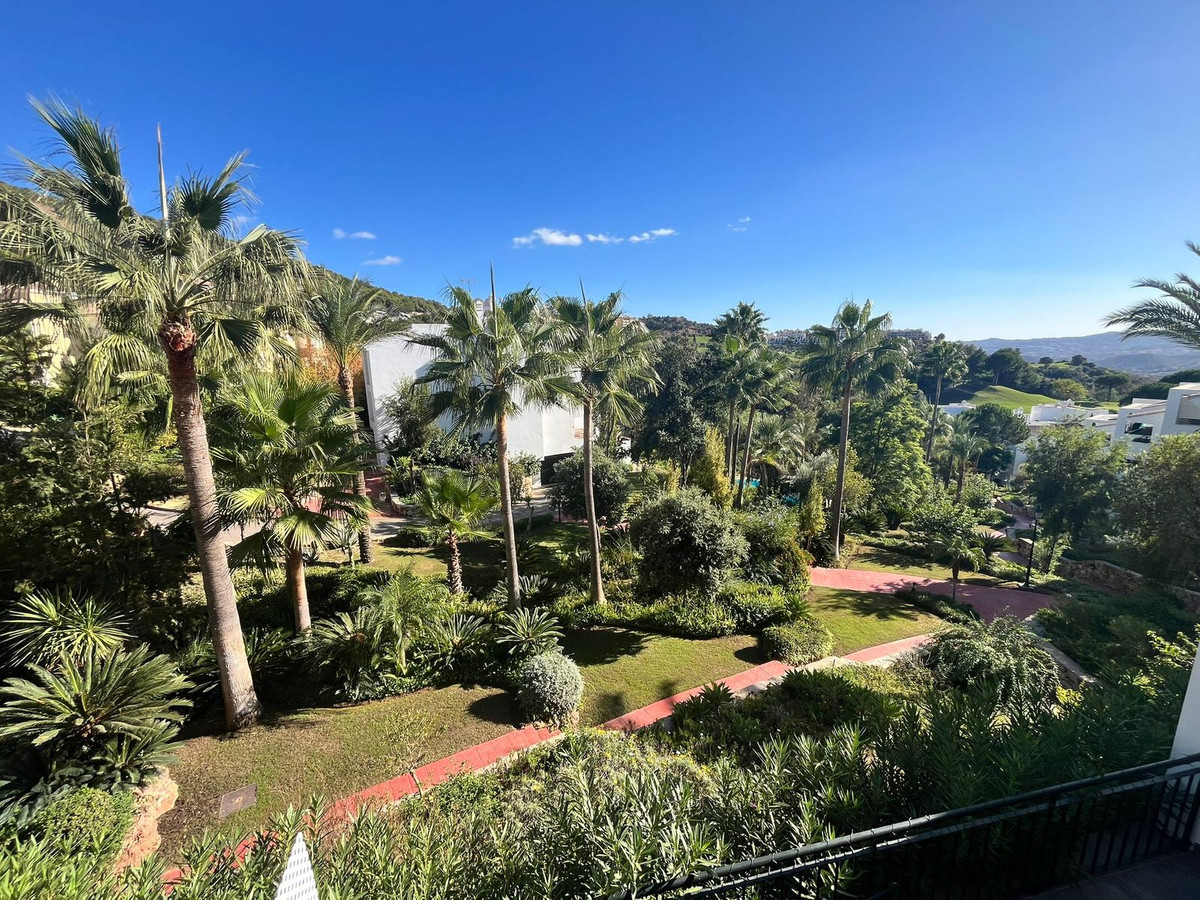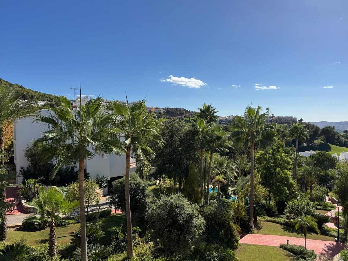 Ce superbe appartement au premier étage offre une vue imprenable sur un jardin tropical luxuriant, le golf d'Alhaurín et les collines environnantes. Accessible par escalier et ascenseur, il s'ouvre sur un hall d'entrée spacieux qui annonce un agencement confortable et bien pensé.