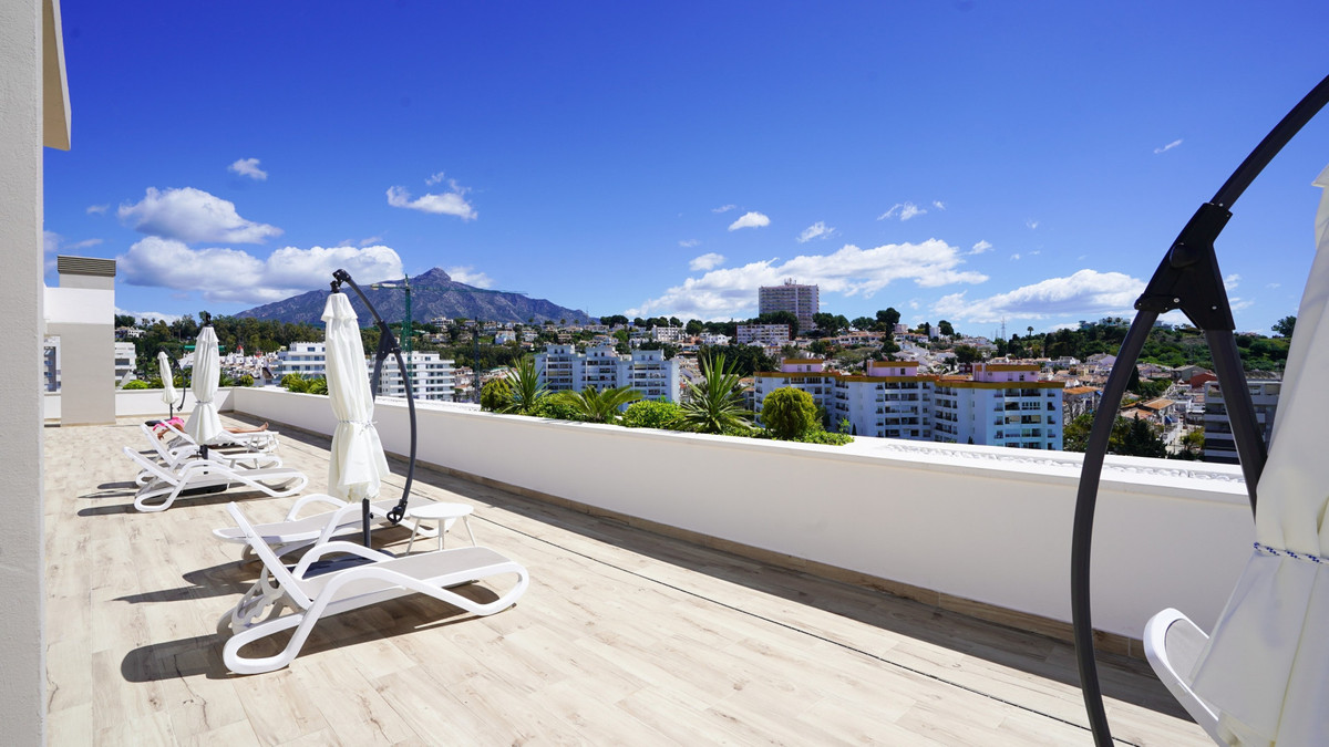 Bénéficiant d'une vue spectaculaire sur la montagne de La Concha et d'un aperçu sur la mer Méditerranée, l'appartement bénéficie d'une abondante lumière naturelle grâce à son orientation est, idéale pour profiter du soleil matinal en savourant un café sur la terrasse. D'une superficie spacieuse de 140 m², la maison comprend 4 chambres, 2 salles de bains, un salon et une cuisine ouverts modernes, ainsi qu'une terrasse et un balcon privés pour se détendre en plein air.