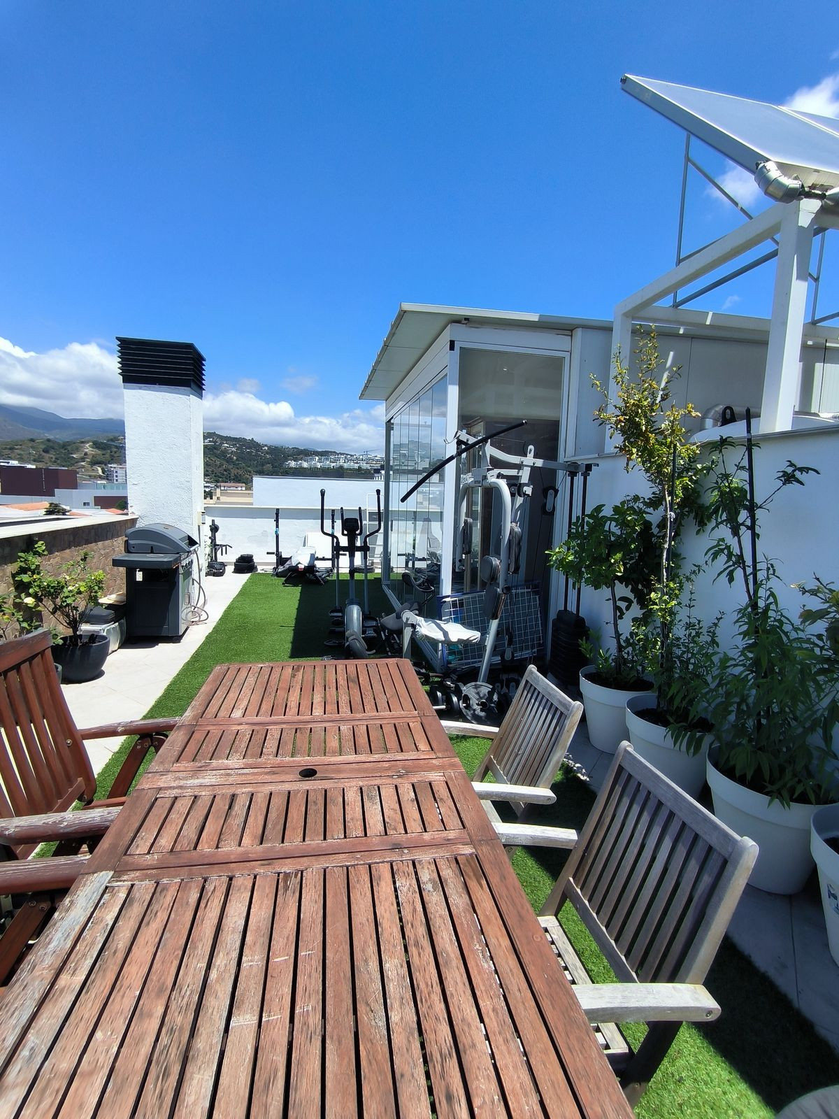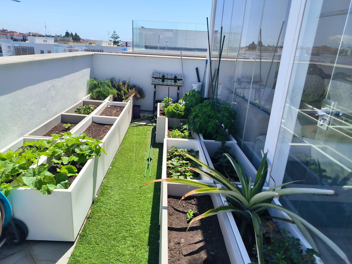 Mais le véritable atout de cette maison se trouve à l'étage : un impressionnant solarium privé de 63 m² sur le toit, offrant une vue panoramique imprenable sur toute la ville et s'étendant jusqu'à la majestueuse Sierra Bermeja. Cet espace extérieur invite à la vie au grand air : partager des repas sous les étoiles, se détendre autour du barbecue ou même cultiver son propre jardin urbain. Une pièce vitrée sur le toit est également disponible, idéale comme coin lecture, bureau ou espace de détente.