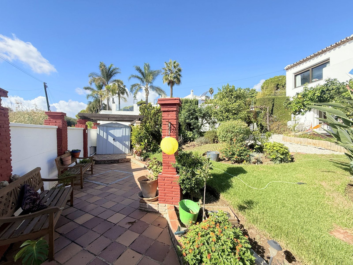 Au niveau inférieur se trouvent deux chambres spacieuses et une salle de bains complète. De là, vous accédez à un charmant jardin privé d'environ 90 m², agrémenté d'arbres matures et d'une végétation soignée qui offrent ombre, fraîcheur et une merveilleuse sensation d'intimité et de tranquillité.