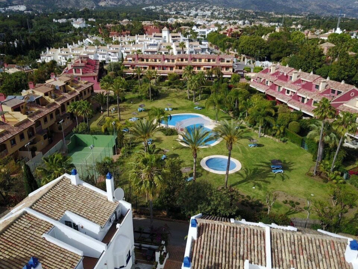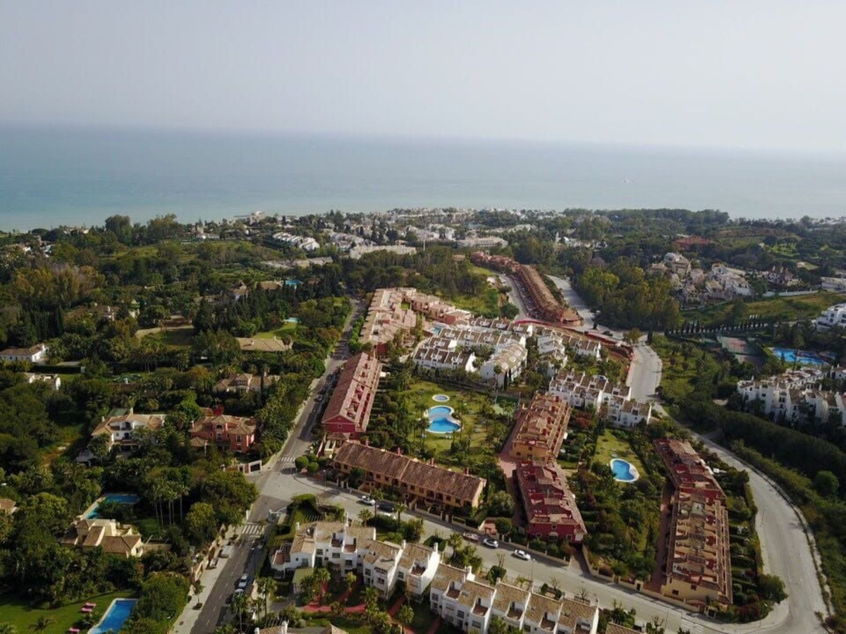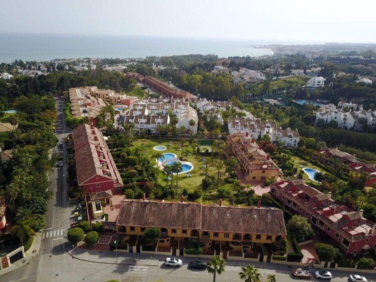 Cette maison de ville exposée plein sud se situe dans le prestigieux quartier du Golden Mile à Marbella, à deux pas des luxueux hôtels Puente Romano et Marbella Club, ainsi que de leurs clubs de plage exclusifs. Elle bénéficie également d'une situation idéale, à proximité du centre de Marbella et du chic Puerto Banús. Nichée au sein d'une résidence sécurisée alliant design moderne et charme méditerranéen classique, cette propriété est entourée de magnifiques jardins luxuriants plantés de palmiers et offre un accès à deux piscines.