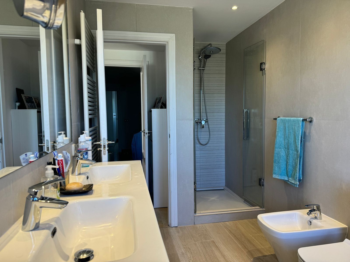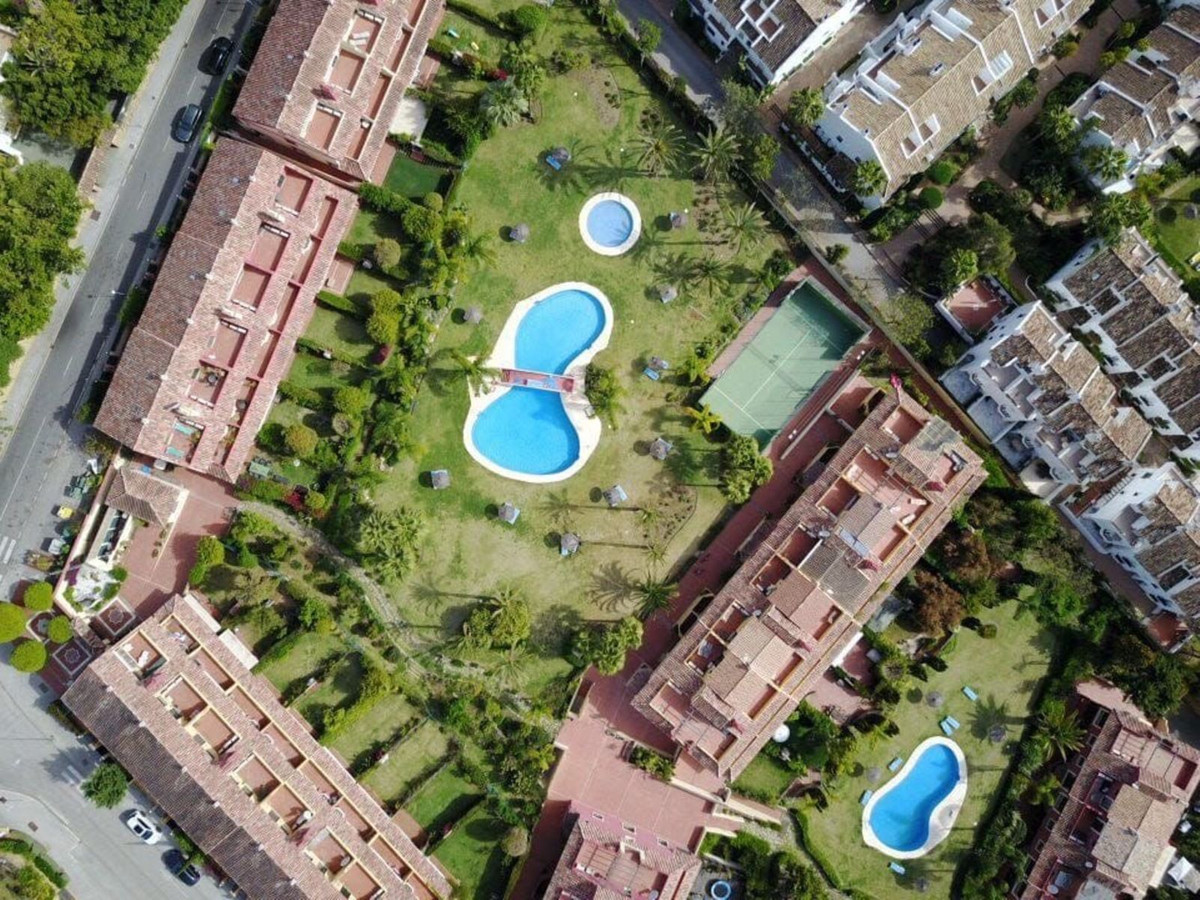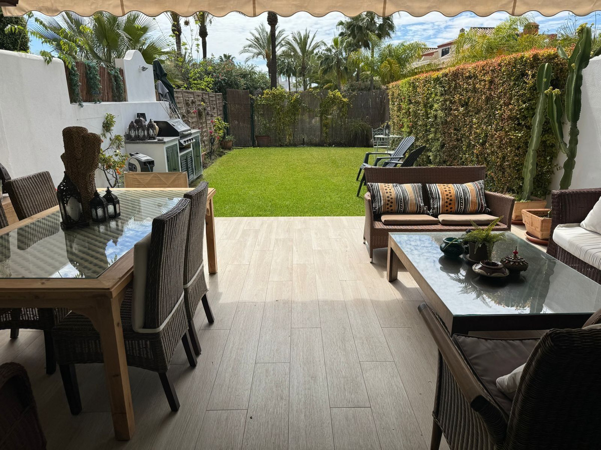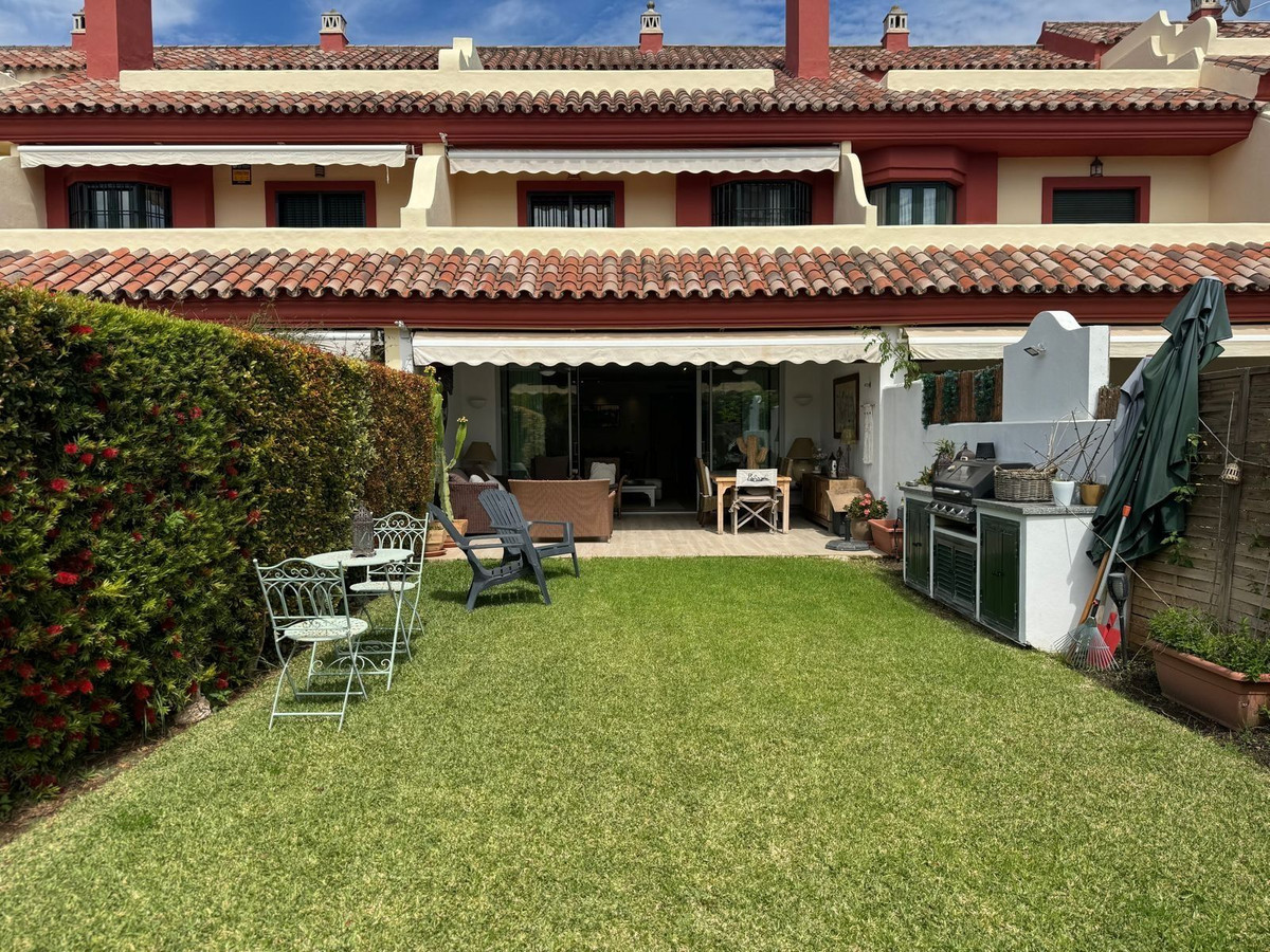 Cette maison de ville exposée plein sud se situe dans le prestigieux quartier du Golden Mile à Marbella, à deux pas des luxueux hôtels Puente Romano et Marbella Club, ainsi que de leurs clubs de plage exclusifs. Elle bénéficie également d'une situation idéale, à proximité du centre de Marbella et du chic Puerto Banús. Nichée au sein d'une résidence sécurisée alliant design moderne et charme méditerranéen classique, cette propriété est entourée de magnifiques jardins luxuriants plantés de palmiers et offre un accès à deux piscines.