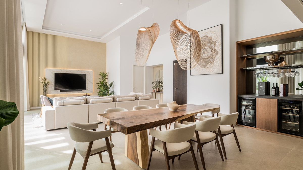 Cette villa, construite principalement de plain-pied avec un niveau inférieur, est une configuration assez rare sur le marché. Elle dégage une atmosphère moderne et épurée. Décorée dans des tons doux et neutres, elle offre une ambiance relaxante, lumineuse et accueillante.
