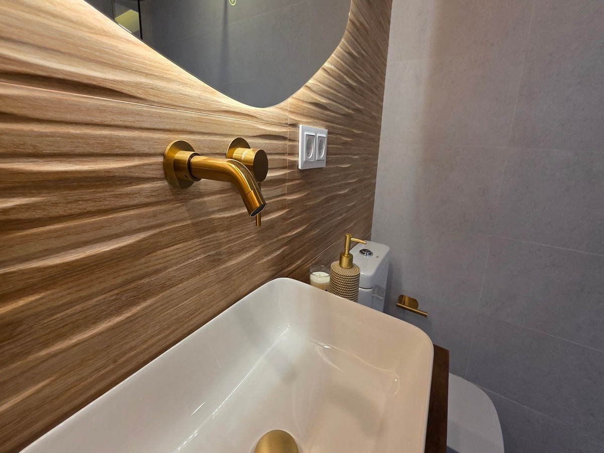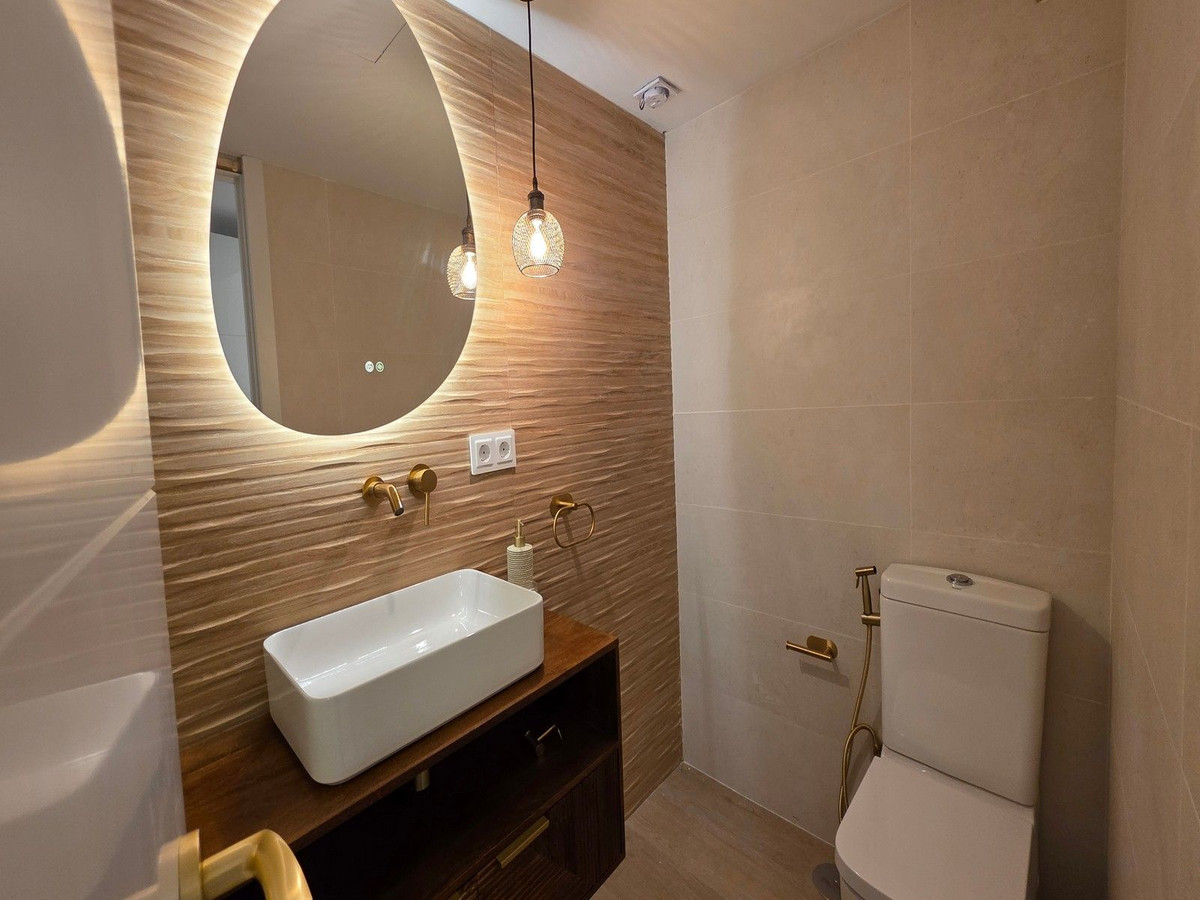 En entrant, vous découvrirez un vaste espace de vie ouvert, agrémenté d'accessoires haut de gamme qui respirent le raffinement. La lumière naturelle abondante accentue l'ambiance chaleureuse et crée une atmosphère accueillante. L'appartement est entièrement climatisé et équipé de fenêtres à double vitrage neuves, vous assurant un confort optimal toute l'année.
