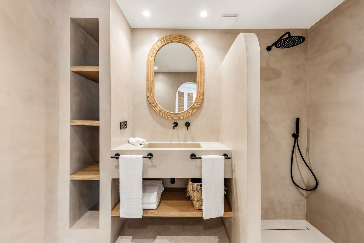 Situé dans le quartier résidentiel huppé de Golden Beach à Elviria, en bord de mer, cet appartement de plain-pied entièrement rénové offre un véritable art de vivre méditerranéen. Orienté ouest, il bénéficie de magnifiques couchers de soleil, créant une atmosphère chaleureuse et accueillante, aussi bien à l'intérieur que sur la terrasse.