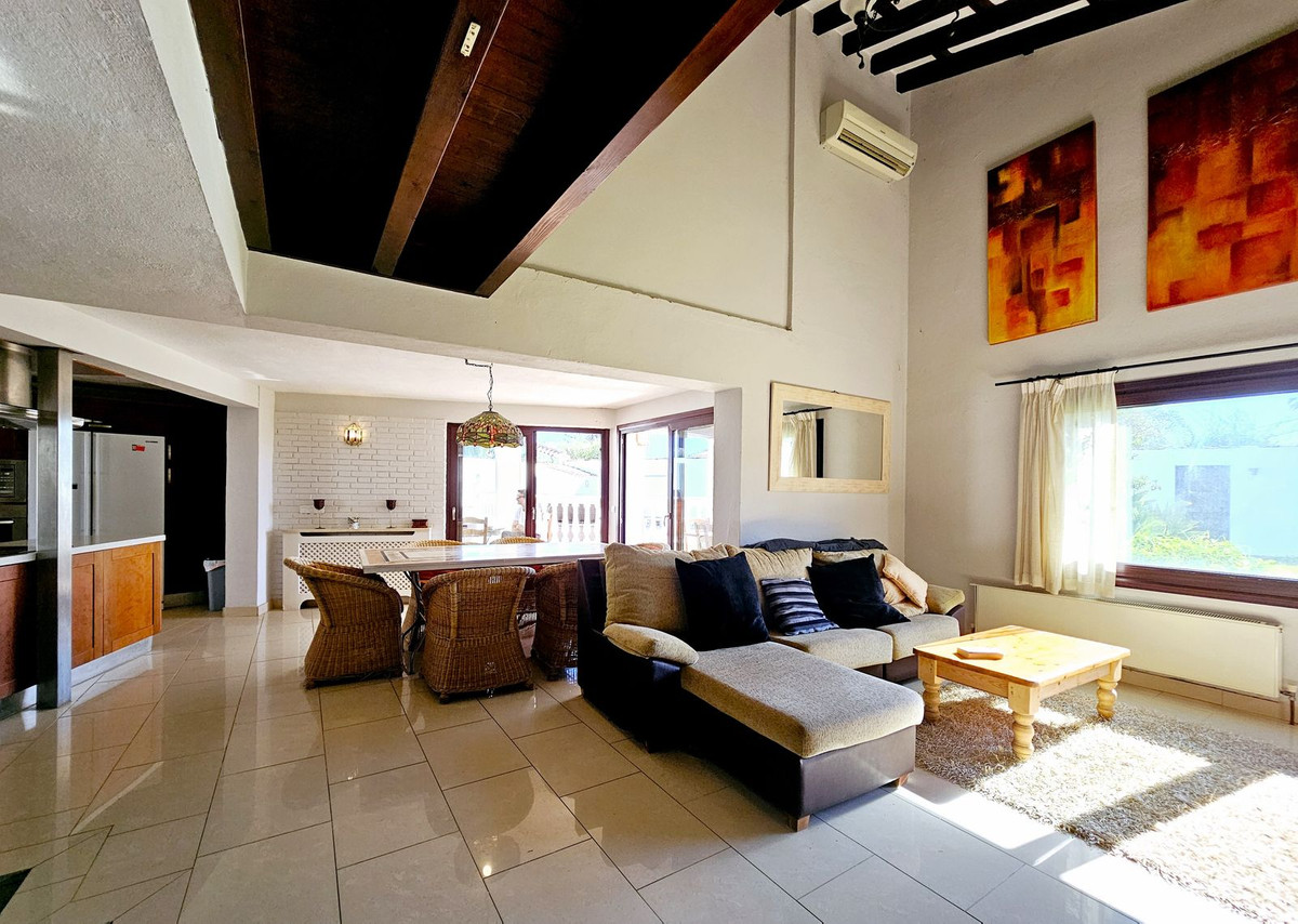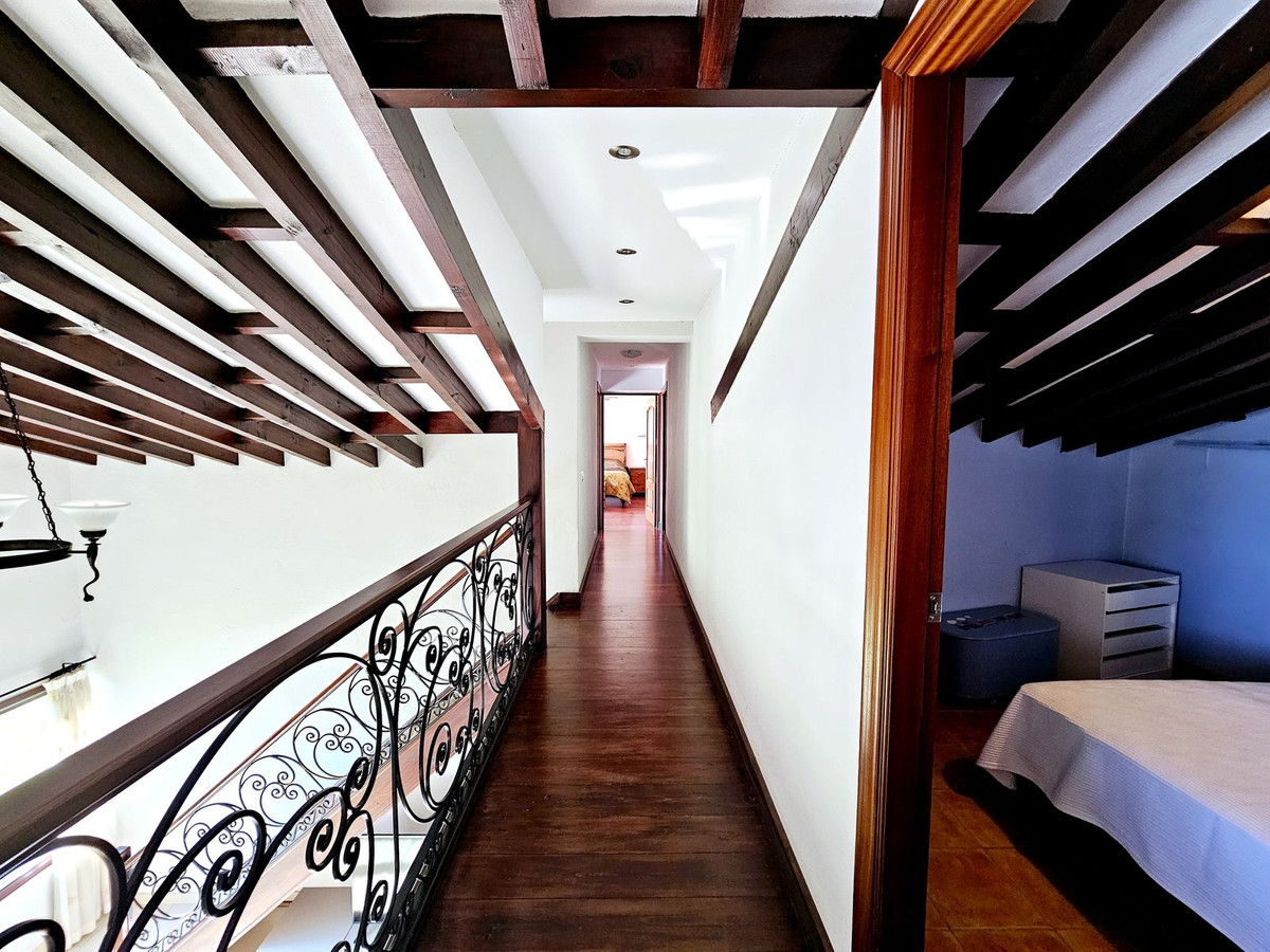 La maison principale comprend 5 chambres, 3 grandes salles de bains rénovées, 2 salons avec cheminées, une vaste cuisine ouverte sur la salle à manger, le tout réparti sur deux étages. Un appartement indépendant avec entrée séparée serait idéal pour le personnel, des adolescents ou des invités. Le terrain de 851 m² est entièrement plat, offrant ainsi un jardin parfaitement exploitable. Ce dernier abrite une très grande piscine et une pelouse, idéale pour une famille avec enfants ou animaux de compagnie. La villa est accessible par un portail automatique, et une porte secondaire au fond du jardin permet un accès plus direct à la plage. Cette propriété a conservé tout son charme andalou avec ses magnifiques poutres apparentes, ses plafonds voûtés et ses carreaux traditionnels.