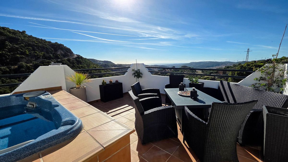 Cette propriété comprend trois chambres, deux salles de bains et des toilettes invités, judicieusement réparties dans des espaces de vie lumineux et aérés. Plusieurs balcons offrent des points de vue exceptionnels, tandis que le solarium privé avec jacuzzi invite à la détente et à profiter du calme de ce cadre pittoresque.
