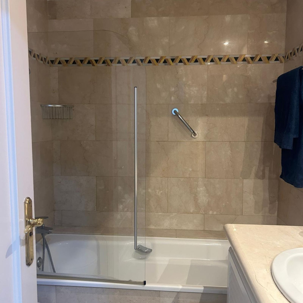 Cet appartement comprend deux grandes chambres doubles, chacune dotée d'une luxueuse salle de bains privative et de placards intégrés offrant un espace de rangement généreux. Des toilettes pour invités complètent l'ensemble, pour le plus grand confort des résidents et de leurs visiteurs. Chaque détail a été soigneusement pensé avec des matériaux haut de gamme, des sols en marbre et une palette de couleurs neutres qui créent une ambiance à la fois calme et raffinée.
