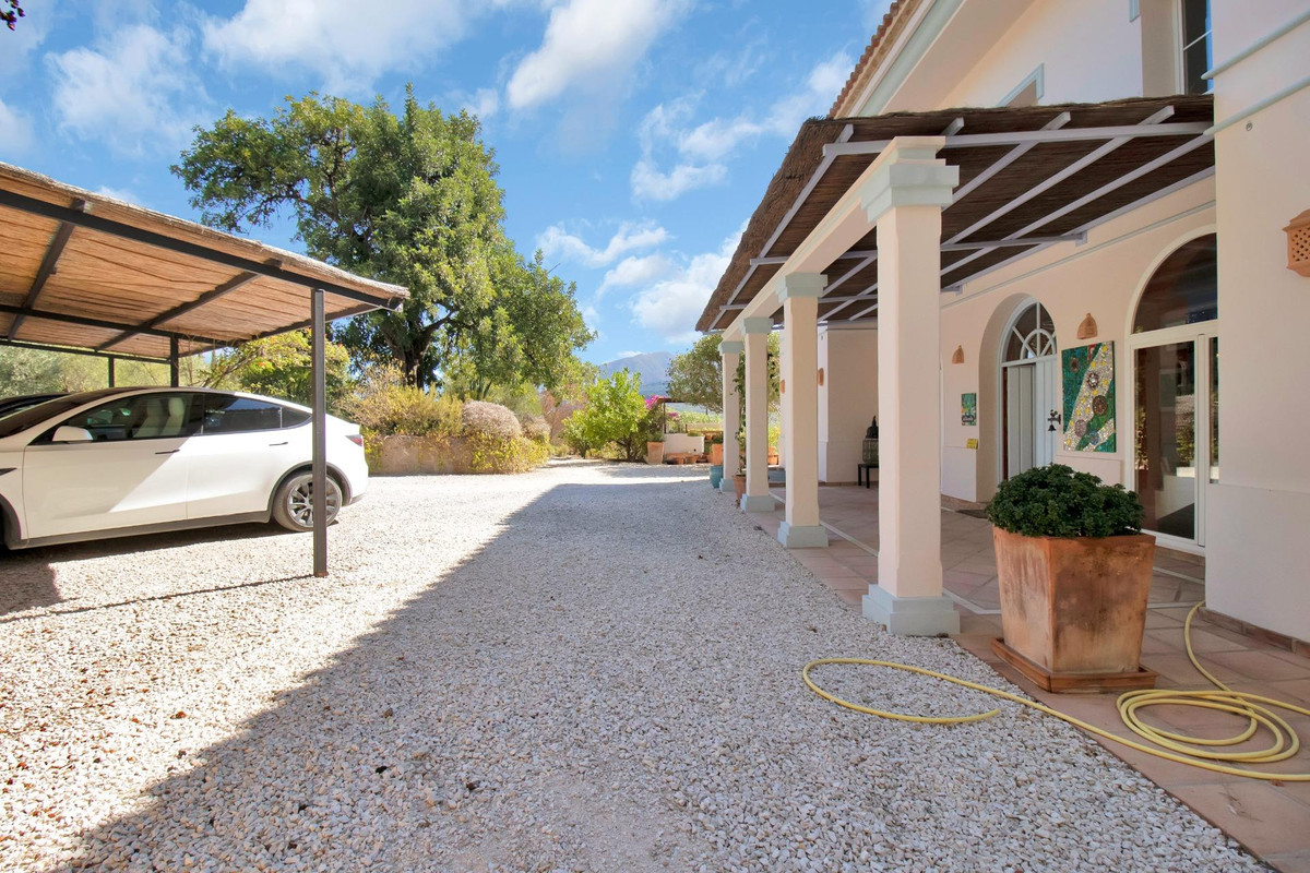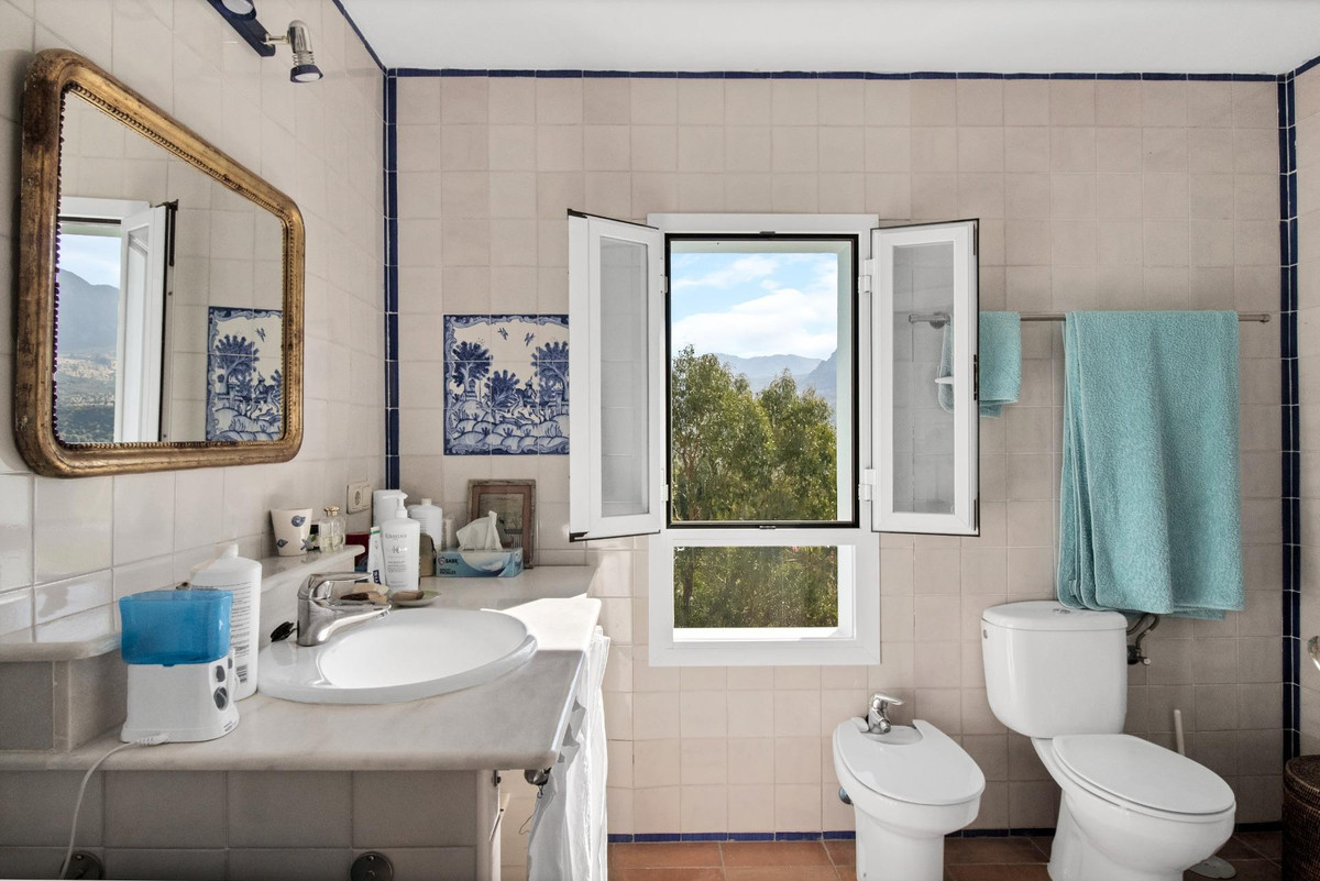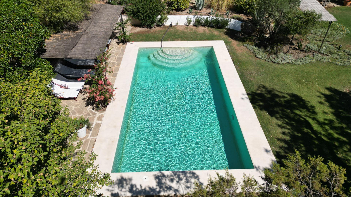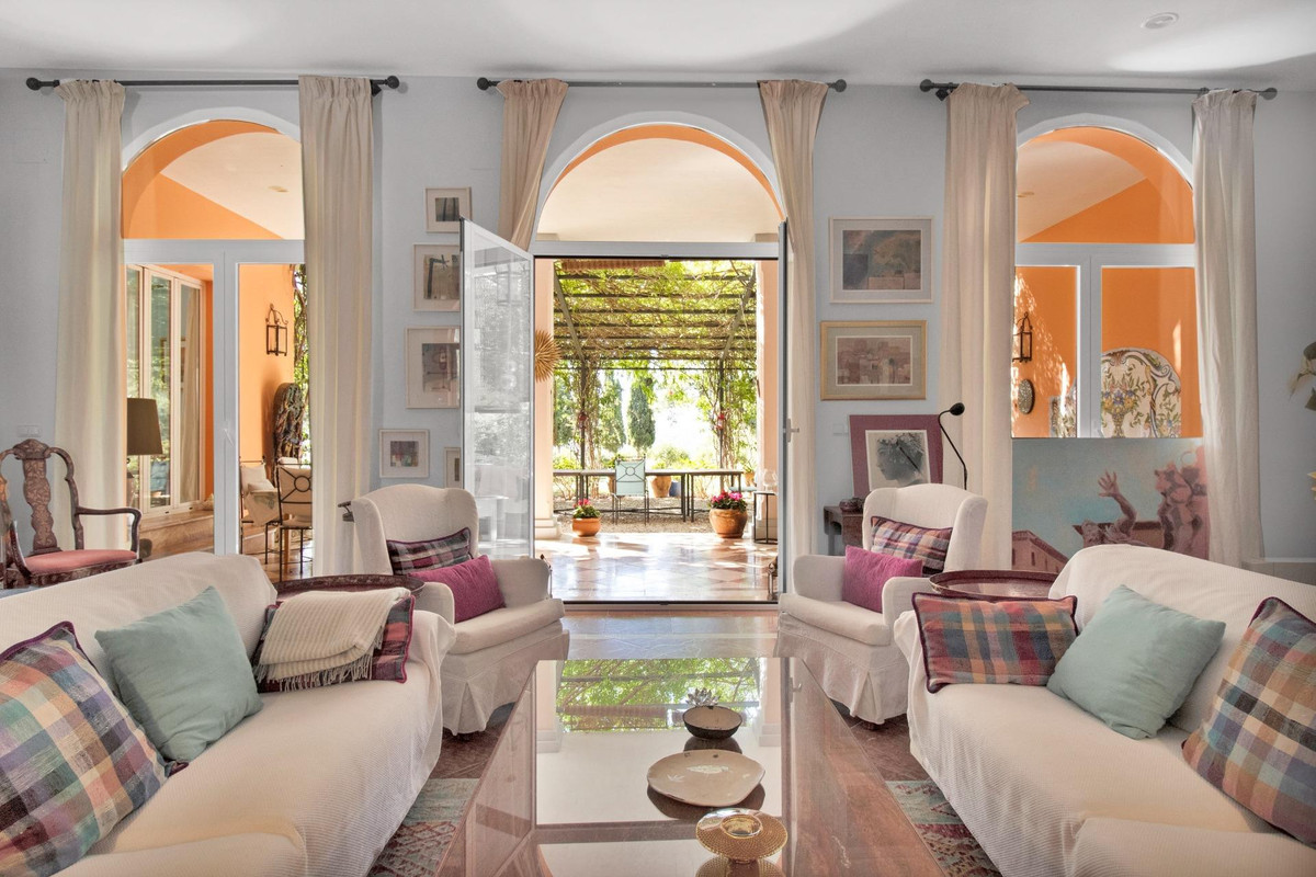 Une maison de campagne unique, nichée dans un écrin de verdure luxuriante, entourée de plantes vivaces et offrant une vue imprenable sur l'horizon. Unique par son esthétique, qui évoque une villa toscane, elle est conçue pour la vie de famille, avec de vastes espaces baignés de lumière où intérieur et extérieur se fondent harmonieusement, où la lumière et le paysage sont les maîtres mots. Unique également par sa modernité et son autonomie énergétique, cette maison offre un confort exceptionnel en toute saison. Chauffage au sol, climatisation… Ces équipements sont assurés par une importante installation de panneaux solaires de plus de 56 m² (stratégiquement placée et invisible de l'extérieur), une installation solaire de 24 kW, deux convertisseurs de 10 kW et une batterie de 20 kW, ainsi qu'une borne de recharge pour véhicule électrique. De plus, la propriété bénéficie d'un approvisionnement en eau par puits, la région étant riche en eau. Une rivière coule à proximité, offrant la possibilité de se baigner en été. Construite en 2000, la maison est orientée plein sud. La maison comprend sept chambres avec salles de bains privatives et plusieurs espaces polyvalents (bureau, atelier, bibliothèque, etc.). Elle est entourée d'un vaste jardin luxuriant, d'une grande pelouse et d'une charmante piscine avec de larges terrasses ensoleillées et un bain de glace pour les plus courageux. À l'arrière, on trouve un grand potager et un poulailler. Une allée privée, bordée de cyprès, mène à la maison et offre un grand parking. La porte principale s'ouvre sur un hall d'entrée lumineux qui dessert le salon avec de grandes portes vitrées. Attenante, une généreuse terrasse couverte se transforme en pièce à vivre en été. Une salle à manger séparée communique avec la cuisine allemande SieMatic entièrement équipée, ainsi qu'avec un cellier comprenant trois réfrigérateurs et un congélateur. La cuisine et la salle à manger s'ouvrent sur une terrasse exposée à l'est, aménagée avec une cuisine d'été. La vue sur la Sierra Crestellina y est à couper le souffle. L'autre aile du rez-de-chaussée abrite une bibliothèque ou une salle de télévision, entièrement équipée d'étagères. On y trouve également une grande chambre d'amis avec cheminée, placards intégrés et salle de bains privative. Cette chambre donne sur le jardin. Au premier étage se trouve un palier spacieux pouvant servir de salon supplémentaire ou d'atelier d'artiste. La grande suite parentale, avec son plafond mansardé, comprend un dressing avec puits de lumière et une salle de bains privative. Les fenêtres offrent une vue sur les jardins et la profusion de fleurs qui ornent la terrasse couverte du rez-de-chaussée. La suite parentale communique avec une autre chambre dotée d'une salle de bains. Cette dernière peut servir d'annexe à la suite principale, mais est également accessible depuis le palier et peut être utilisée comme chambre indépendante. À ce même étage se trouvent également un grand bureau (ou chambre supplémentaire) avec étagères intégrées et, de l'autre côté du palier, deux autres chambres avec salle de bains privative.Le rez-de-jardin, d'une superficie de plus de 300 m², comprend une buanderie, un grand atelier/studio, une cave, un débarras et un local technique. À l'est se trouve un appartement de service avec cuisine-séjour, chambre, salle de bains et terrasse et jardin privatifs. Une autre grande suite d'invités, avec salle de bains et kitchenette, s'ouvre également sur le jardin. Cette luxueuse maison de campagne à vendre en Andalousie offre de nombreux atouts : piscine extérieure, trois cheminées, arrosage automatique des jardins, parquet et sols en travertin, fenêtres à double vitrage et espace barbecue. Carrelage décoratif portugais. De vastes espaces sont aménagés pour un potager. L'eau provient d'un puits privé. Cette propriété exclusive est située à seulement 15 minutes de Gaucin, 30 minutes de la plage, 45 minutes de Marbella et Sotogrande, et à 1h30 de l'aéroport international de Malaga.