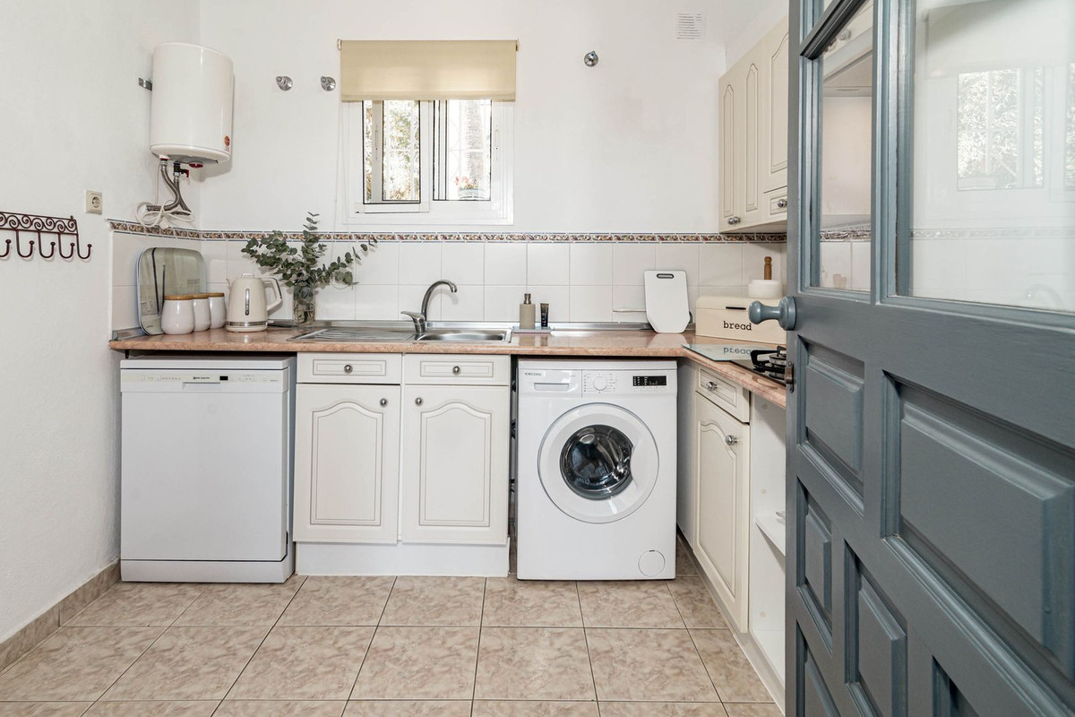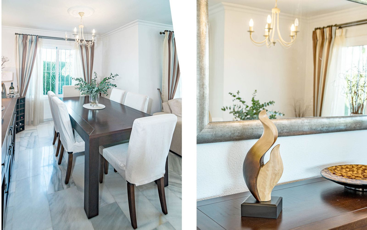 Il s'agit d'une villa individuelle située dans un petit ensemble résidentiel calme de 9 maisons individuelles. Elle se trouve dans le quartier résidentiel et verdoyant de Jardines de Calahonda, en bordure du golf de Cabopino.