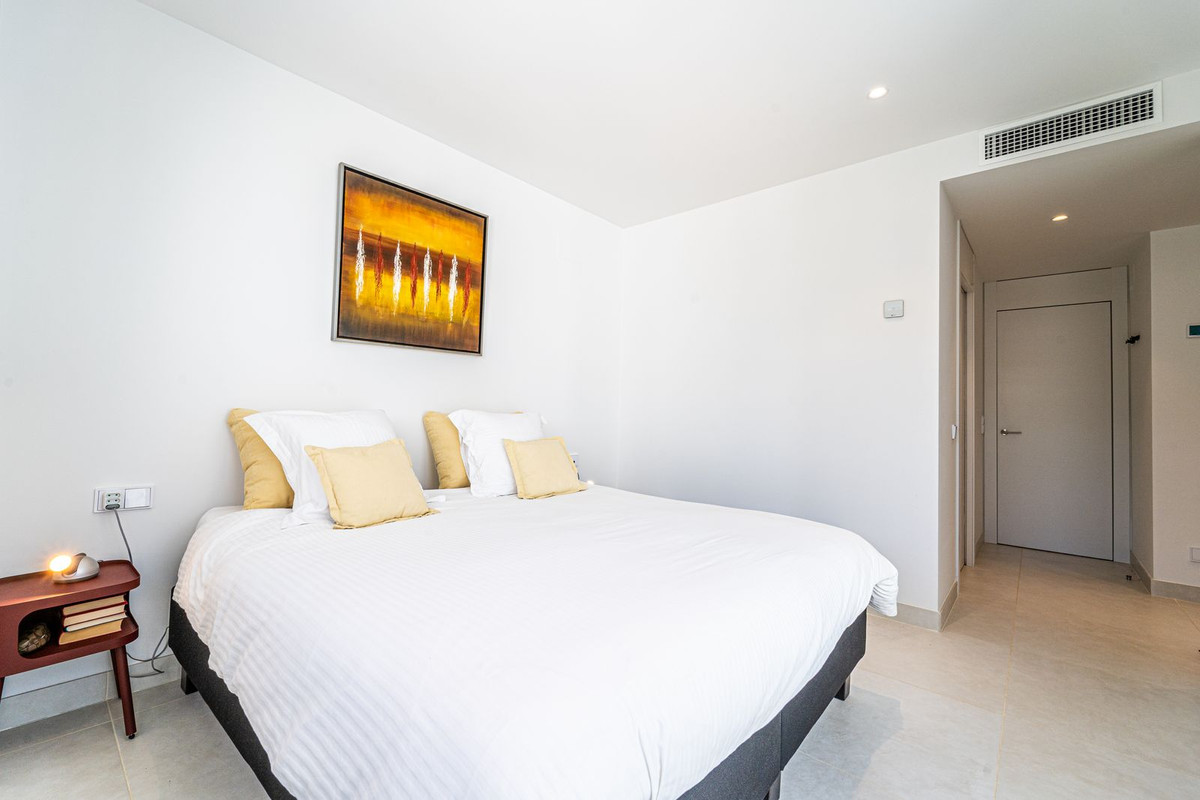 Appartement de luxe exposé ouest, dans la prestigieuse urbanisation d'Higuerón Ouest. Il comprend 3 chambres, 2 salles de bains, un vaste séjour/salle à manger, une cuisine américaine entièrement équipée avec des appareils Bosch (dont un réfrigérateur-congélateur américain et une cave à vin), une buanderie avec lave-linge/sèche-linge, et une grande terrasse de 54 m² avec vue sur le jardin. La suite parentale dispose d'un dressing, d'une salle de bains ouverte et d'un accès à une petite terrasse de 5 m². L'appartement est équipé de la climatisation réversible, d'un interphone vidéo, d'un système domotique, de placards intégrés dans toutes les chambres et l'entrée, de stores électriques sur la terrasse principale et de rideaux électriques dans le séjour. Une pré-installation pour un système d'alarme est prévue, ainsi que le chauffage au sol dans les deux salles de bains. Deux places de parking et un cellier sont inclus.