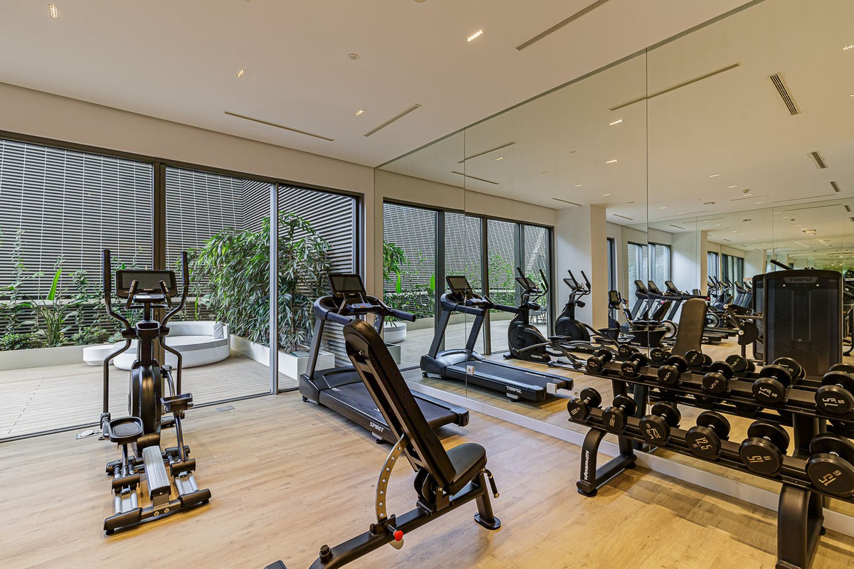L'immeuble, achevé en 2024, comprend une réception/conciergerie ouverte 24h/24, une impressionnante piscine sur le toit au 21e étage avec bar réservé aux résidents, une piscine intérieure chauffée avec solarium, une piscine extérieure gratuite avec solarium séparé et lits balinais, ainsi qu'un espace spa intégrant une autre piscine intérieure.