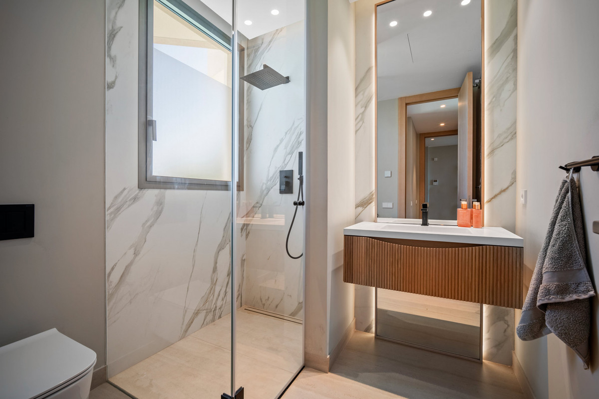 Conçue pour estomper la frontière entre intérieur et extérieur, la résidence dispose d'une vaste terrasse couverte, idéale pour les repas et les réceptions en famille ou entre amis. Le solarium sur le toit, aménagé sur mesure, est doté d'une piscine privée et offre une vue panoramique imprenable sur la mer Méditerranée, Gibraltar, l'Afrique et l'emblématique montagne de La Concha à Marbella.