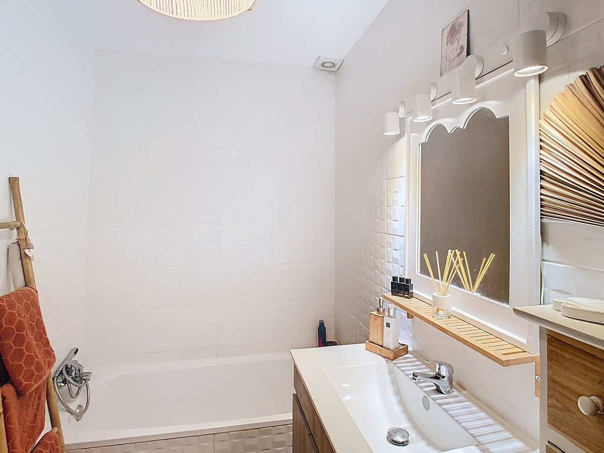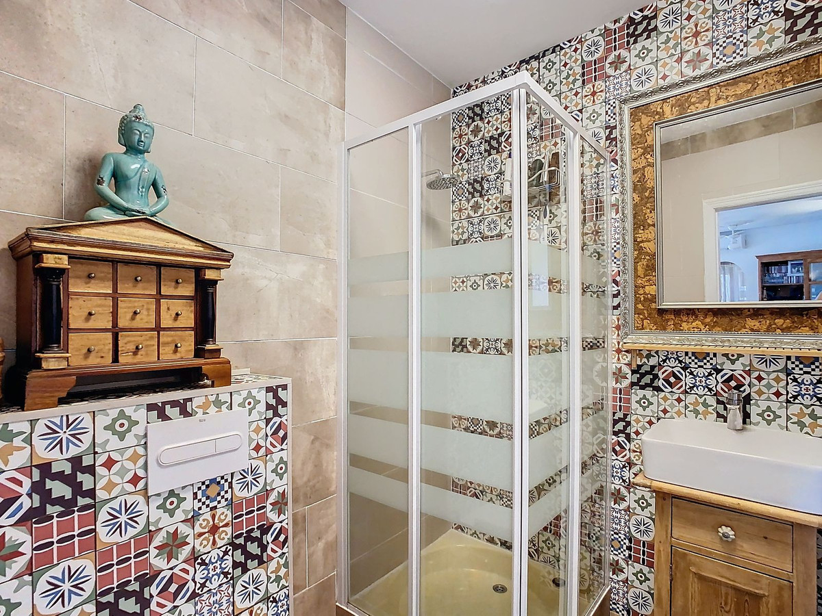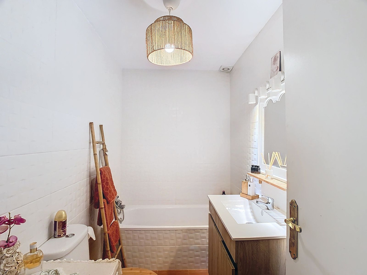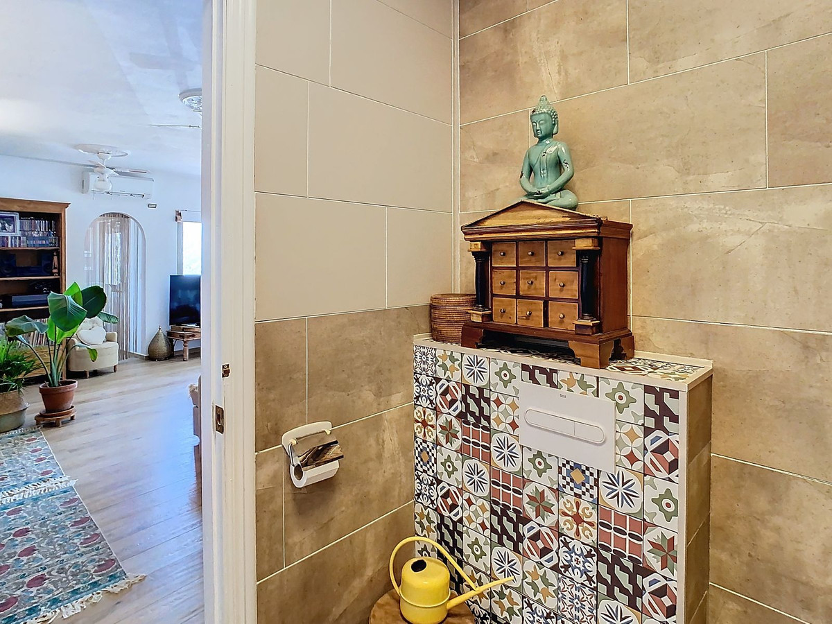Une salle de bains entièrement rénovée au rez-de-chaussée offre un confort luxueux avec une baignoire, des sols, des murs et des équipements modernes. La salle de bains à l'étage a également été embellie pour plus de confort. Des rampes ont été installées dans l'escalier, du rez-de-chaussée à l'étage, ainsi que sur la terrasse sur le toit, garantissant la sécurité et l'accessibilité de l'immeuble pour tous les résidents.