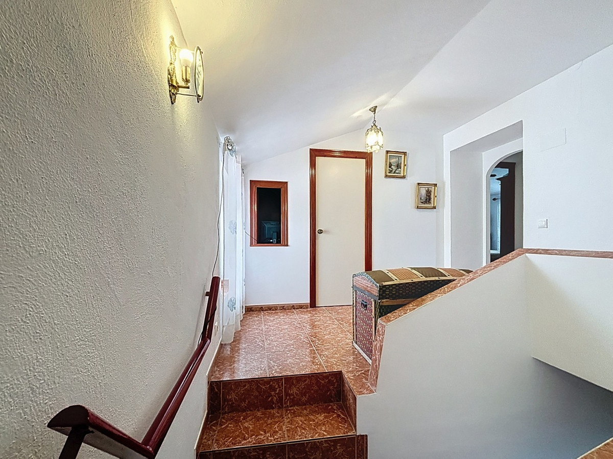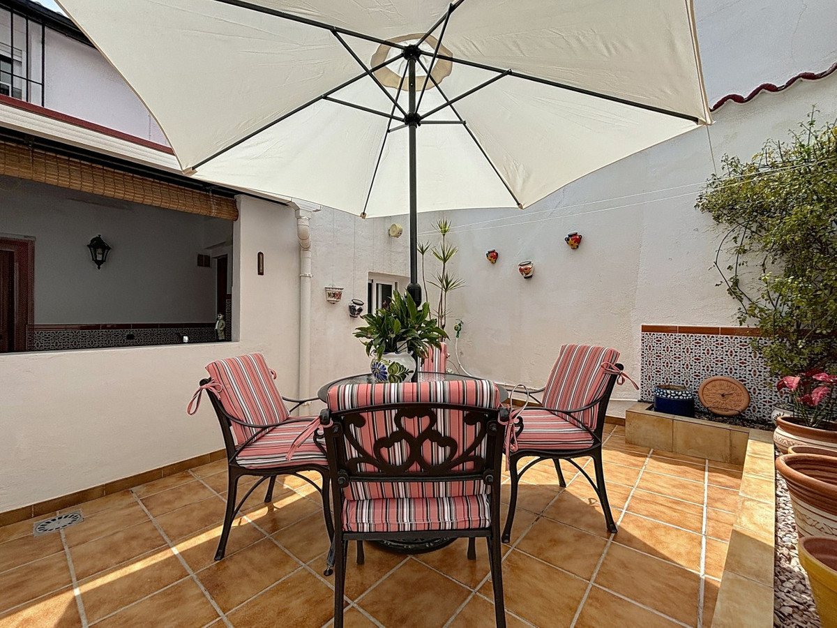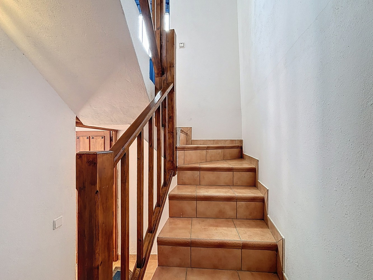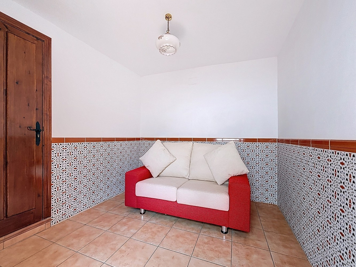 Nichée dans le charmant village de montagne de Periana, cette spacieuse maison jumelée est un véritable bijou au charme andalou. Répartie sur deux étages, elle offre cinq chambres, une salle de bains avec baignoire, une autre avec douche, et des toilettes séparées faisant également office de buanderie, idéales pour la vie de famille ou pour recevoir des invités. Au rez-de-chaussée, vous trouverez une cuisine accueillante, une salle à manger séparée avec accès direct au patio andalou typique, et un salon avec un poêle chaleureux pour les mois plus frais. Le patio est le cœur de la maison, parfait pour profiter de moments de détente en plein air. À l'étage, la terrasse offre une vue panoramique sur les toits du village, un endroit idéal pour se relaxer en fin de journée. Certaines parties de la maison sont aménageables, offrant une grande liberté pour concrétiser vos idées ou créer un espace de vie supplémentaire. Un garage pratique complète ce bien, un atout précieux dans le centre historique de Periana. Que ce soit comme résidence familiale spacieuse, maison de vacances ou investissement prometteur, cette propriété allie charme traditionnel et nombreuses possibilités. Nous serons ravis de vous présenter prochainement cette propriété de rêve, en personne ou par visite virtuelle. Parce que ce monde est unique, tout comme notre Axarquía. En Andalousie. Sur la Costa del Sol. Ici, du bon côté de la vie…