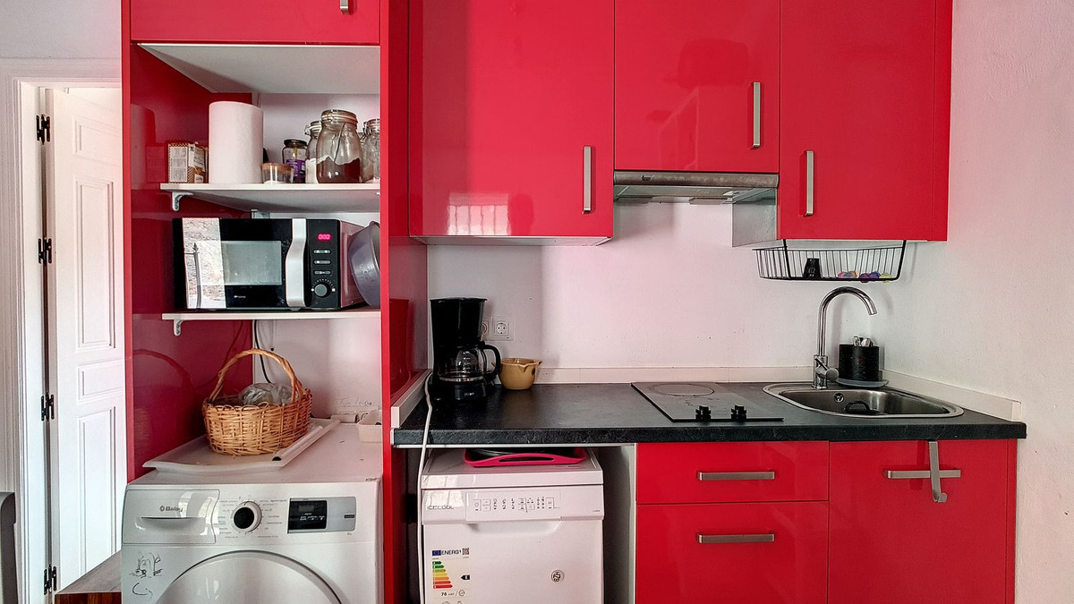 Un appartement totalement indépendant comprenant un salon lumineux climatisé, une cuisine entièrement équipée, deux chambres, une salle de bains (avec douche, toilettes et lavabo) et un dressing/débarras.