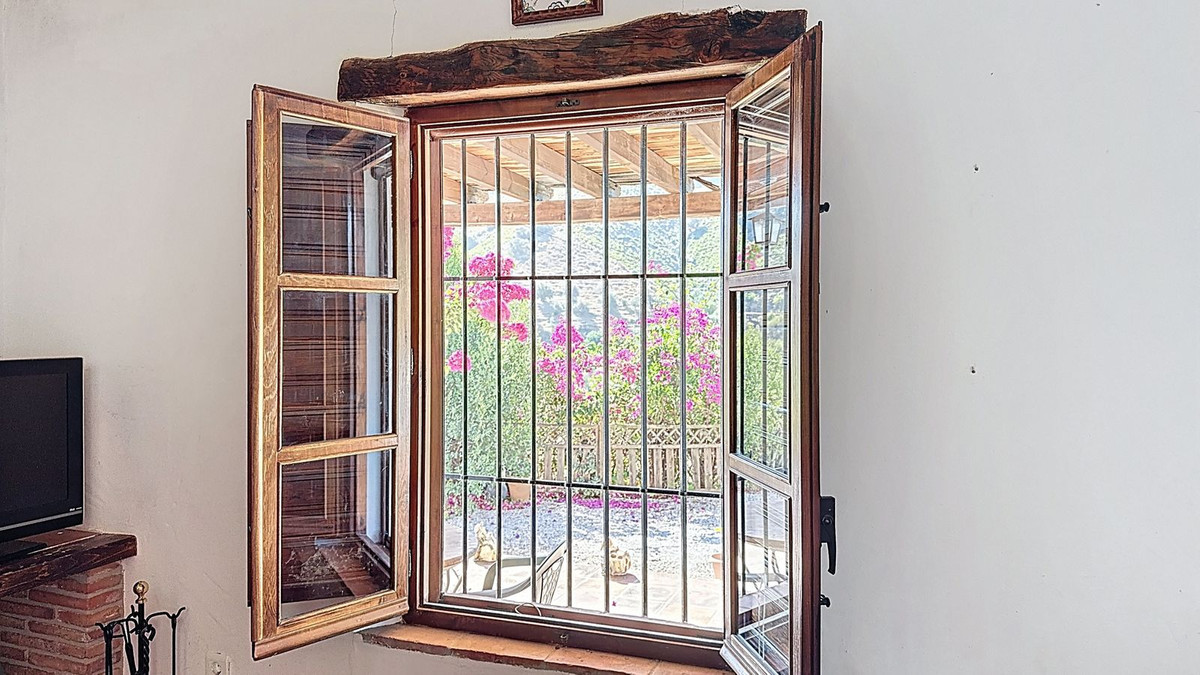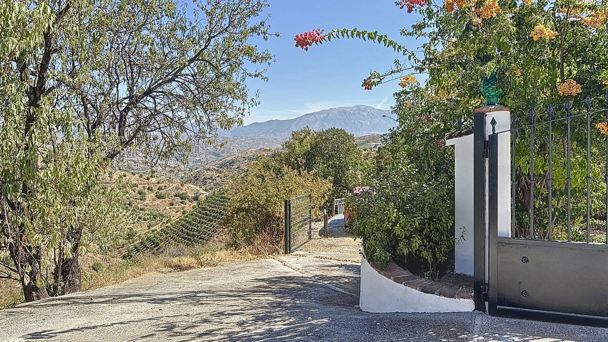Cette charmante maison espagnole de plain-pied se situe à seulement neuf minutes en voiture d'Almáchar. La route d'accès est majoritairement goudronnée, les quatre derniers kilomètres se faisant sur un chemin de terre bien entretenu. À votre arrivée, une terrasse couverte, ornée de bougainvilliers éclatants, vous accueille et offre une vue imprenable sur le paysage montagneux environnant, parsemé de vignes et d'oliviers.