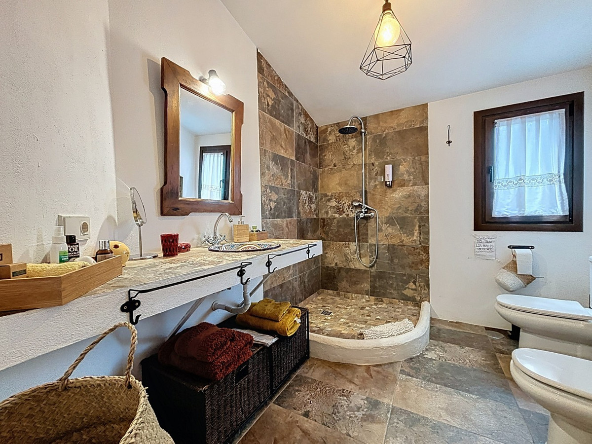 Découvrez le charme de la vie à la campagne dans cette spacieuse maison de campagne nichée dans les collines de Comares. Cette propriété unique se compose d'une maison et de deux espaces de vie indépendants, offrant une grande flexibilité pour les familles, les invités ou la location. Au rez-de-chaussée, la pièce de vie principale comprend cinq chambres, deux salles de bains, une cuisine et un vaste séjour/salle à manger. De grandes fenêtres laissent entrer la lumière naturelle, créant une atmosphère chaleureuse et accueillante. À l'étage, l'appartement en mezzanine dispose de sa propre cuisine, d'un séjour/salle à manger, d'une salle de bains et d'une chambre, idéal pour accueillir des invités ou pour la location. Le rez-de-chaussée possède également deux entrées séparées, permettant de diviser l'espace en deux appartements : l'un de deux chambres et l'autre de trois. Une option idéale pour une famille nombreuse ou un investissement locatif. À l'extérieur, vous trouverez une piscine privée, un espace barbecue, une terrasse couverte et un vaste espace pour vous détendre et admirer la vue paisible sur les montagnes. Parmi les autres atouts, citons un cellier, une buanderie, la climatisation et une cheminée pour un confort optimal toute l'année. Que vous recherchiez une maison familiale, un havre de paix pour vos vacances ou un investissement dans la campagne andalouse, cette propriété offre un potentiel infini dans un cadre exceptionnel. Contactez-nous dès aujourd'hui pour organiser une visite et découvrir la beauté de Comares. Nous serons ravis de vous présenter prochainement cette propriété de rêve, en personne ou virtuellement. Car ce monde est unique, à l'image de notre Axarquía. En Andalousie. Sur la Costa del Sol. Ici, sous le soleil…