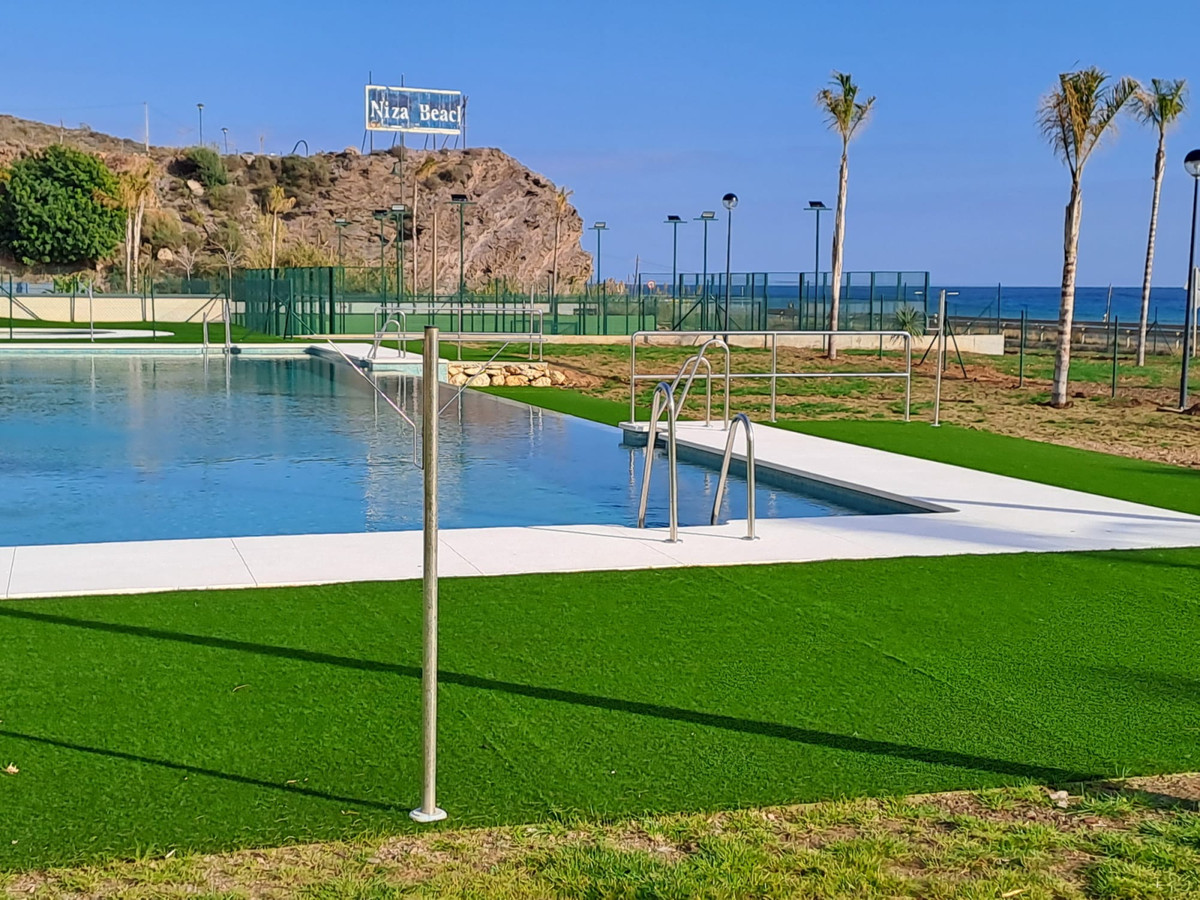 Les appartements du rez-de-chaussée disposent de grandes terrasses, tandis que ceux du premier et du deuxième étage offrent des terrasses privatives. Le complexe résidentiel comprend des jardins paysagers, deux piscines et deux courts de paddle-tennis.