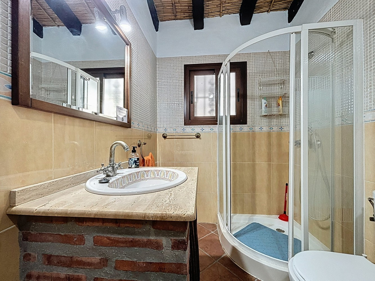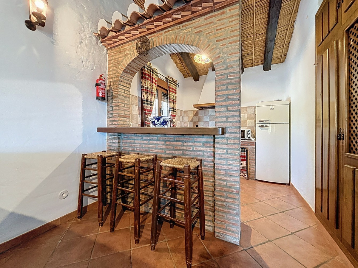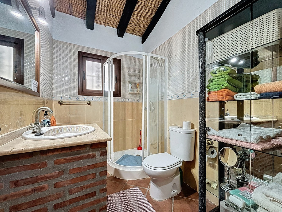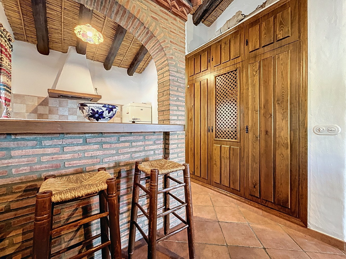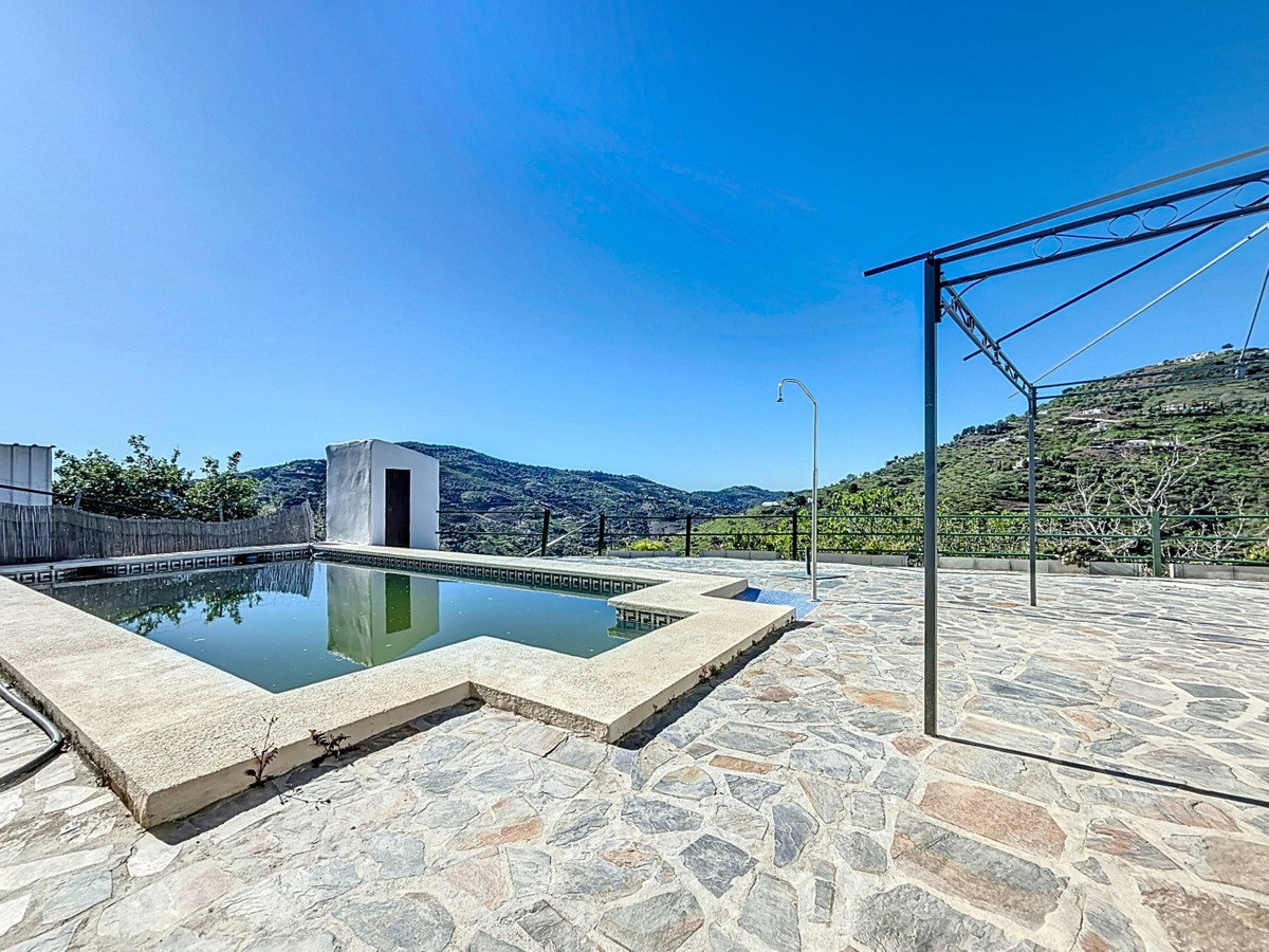 Nichée dans les douces collines en contrebas de Cómpeta, avec une vue imprenable sur les montagnes environnantes, cette charmante maison de campagne de style andalou traditionnel offre un havre de paix aux amoureux de la nature et à ceux qui recherchent la tranquillité. De plain-pied, elle comprend un salon-salle à manger convivial avec une cuisine attenante typiquement andalouse. Trois chambres, une salle de bains et des toilettes séparées offrent un espace confortable pour la famille ou les amis. Le chauffage au sol et la climatisation dans les pièces principales garantissent un confort optimal toute l'année, que ce soit lors des chaudes journées d'été ou des fraîches nuits d'hiver. À l'extérieur, une vaste terrasse couverte invite à la détente, tandis que la piscine rafraîchissante, les toilettes supplémentaires et une petite cuisine d'été intégrée créent un cadre idéal pour profiter du plein air et recevoir des invités. La propriété est implantée sur un terrain naturel arboré de divers arbres fruitiers, offrant un magnifique écrin pour la vie sous le soleil du sud. Une maison authentique pleine de caractère et de confort moderne, parfaite comme résidence secondaire ou principale dans l'une des régions les plus pittoresques d'Andalousie. Nous serons ravis de vous présenter prochainement cette propriété de rêve, en personne ou par visite virtuelle. Parce que ce monde est unique, tout comme notre Axarquía. En Andalousie. Sur la Costa del Sol. Ici, du bon côté de la vie…