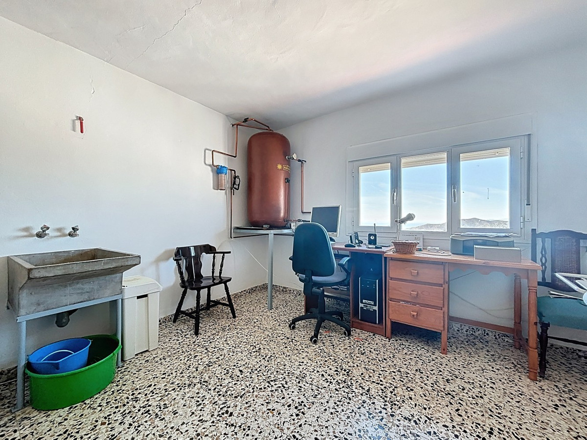 Ce chalet baigné de lumière, aux abords de Cómpeta, allie espace, tranquillité et la douceur de vivre andalouse. Réparti sur trois niveaux, il offre un cadre de vie idéal, que ce soit pour y vivre à l'année ou y passer des vacances ensoleillées. À l'intérieur, vous découvrirez trois chambres confortables, une salle de bains, un salon accueillant, une salle à manger séparée et une cuisine fonctionnelle, le tout lumineux et spacieux, conçu pour un confort optimal. La vie se prolonge à l'extérieur : plusieurs terrasses et balcons offrent des espaces ensoleillés et ombragés tout au long de la journée, parfaits pour savourer un café le matin, lire un bon livre ou passer d'agréables soirées entre amis. L'espace piscine avec barbecue intégré est idéal pour profiter des longues journées d'été, tandis que la vue s'étend sur le village, les collines environnantes et jusqu'à la mer au loin. Un garage, un cellier et une buanderie séparée complètent les atouts pratiques de cette maison. Et surtout : les commerces, cafés et restaurants de Cómpeta sont accessibles à pied. Une maison de caractère pour ceux qui souhaitent vivre pleinement l'art de vivre andalou. Nous sommes ravis de pouvoir vous présenter prochainement cette propriété de rêve, en personne ou par visite virtuelle. Car ce monde est unique, à l'image de notre Axarquía. En Andalousie. Sur la Costa del Sol. Ici, sous le soleil…