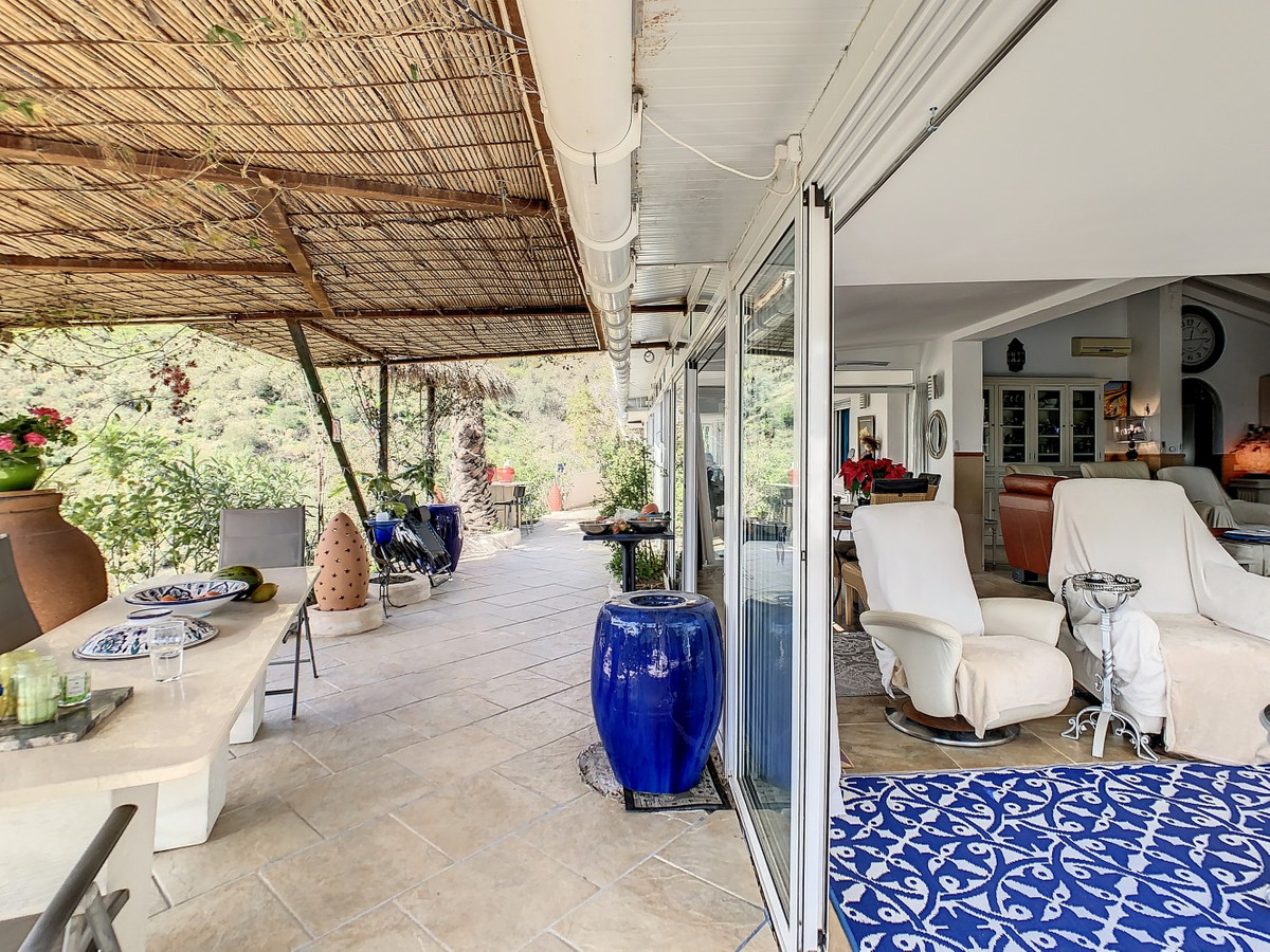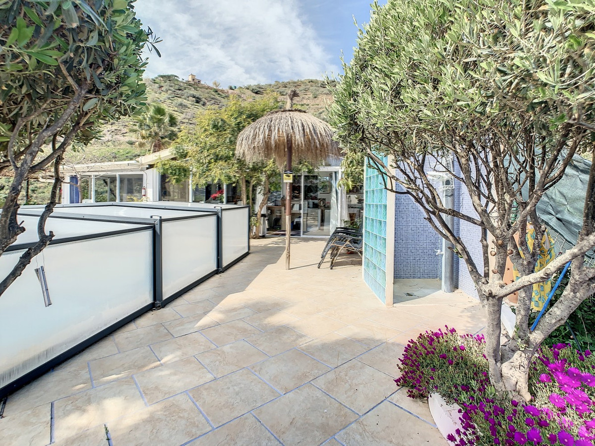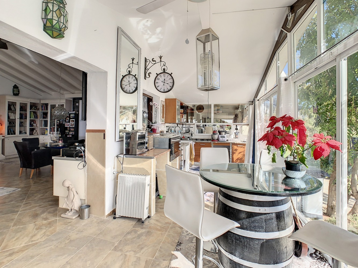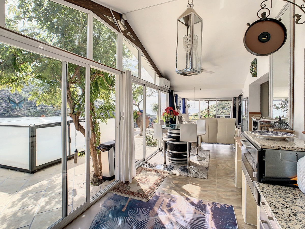 Vous rêvez d'une grande villa avec piscine chauffée, nichée au sommet d'une montagne, en pleine nature et offrant une vue imprenable sur la vallée, la mer et le village d'Arenas ? Cette propriété pourrait bien être celle qu'il vous faut. À l'entrée, vous trouverez un parking couvert pouvant accueillir au moins six voitures et un atelier. De là, une vaste véranda entoure la maison. De plain-pied, au cœur de la villa, se trouvent un bureau, trois chambres, deux salles de bains (dont une attenante), deux cuisines, un espace barbecue extérieur, un grand séjour/salle à manger et plusieurs espaces de détente avec vue sur l'extérieur grâce à des portes-fenêtres. Autour de la véranda, de nombreux espaces intimes pour se détendre et bronzer invitent à la rêverie. Vous y trouverez également la piscine chauffée, des palmiers, une chambre extérieure et un passage menant à de charmants bancs offrant une vue imprenable sur les environs. Une cuisine d'été complète ce bien. Cette villa aux finitions soignées est entièrement équipée. Idéale pour les amoureux du confort et de l'intimité, cette propriété de rêve vous sera bientôt présentée, en personne ou virtuellement. Car ce lieu est unique, à l'image de notre Axarquía. En Andalousie. Sur la Costa del Sol. Ici, la vie est belle et ensoleillée…