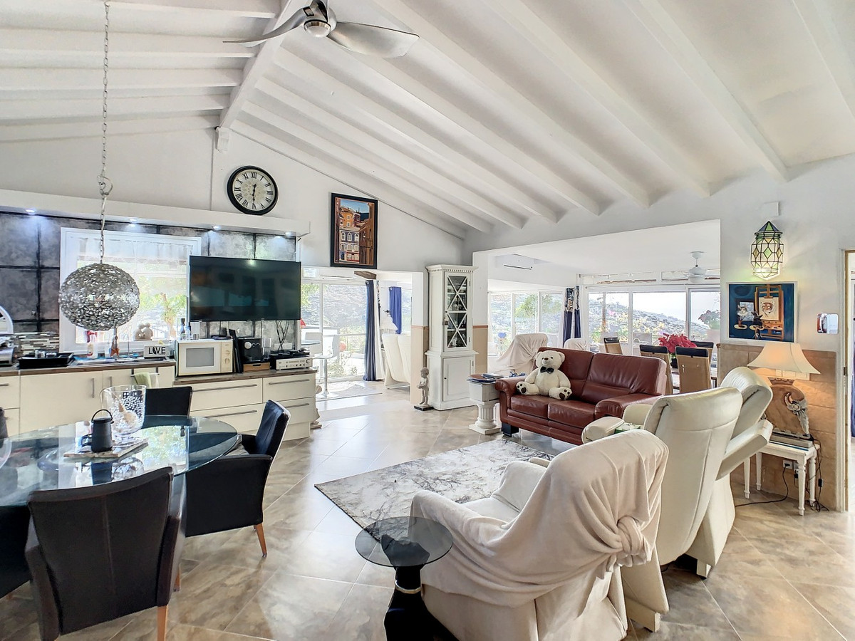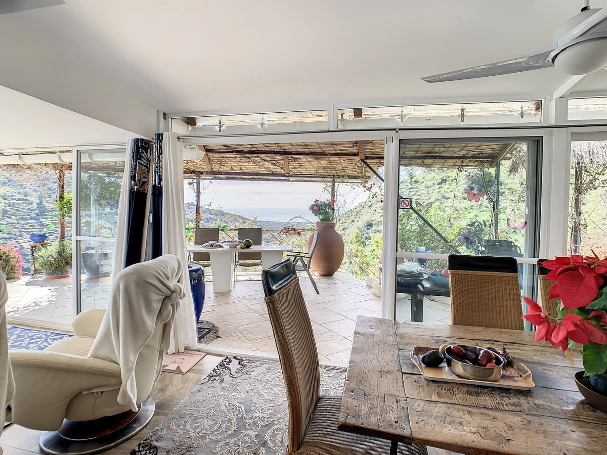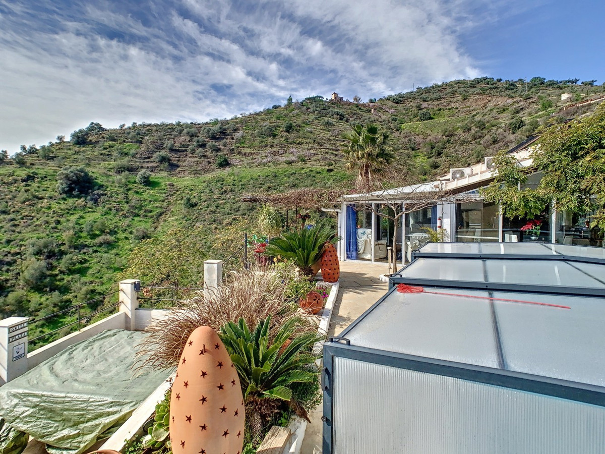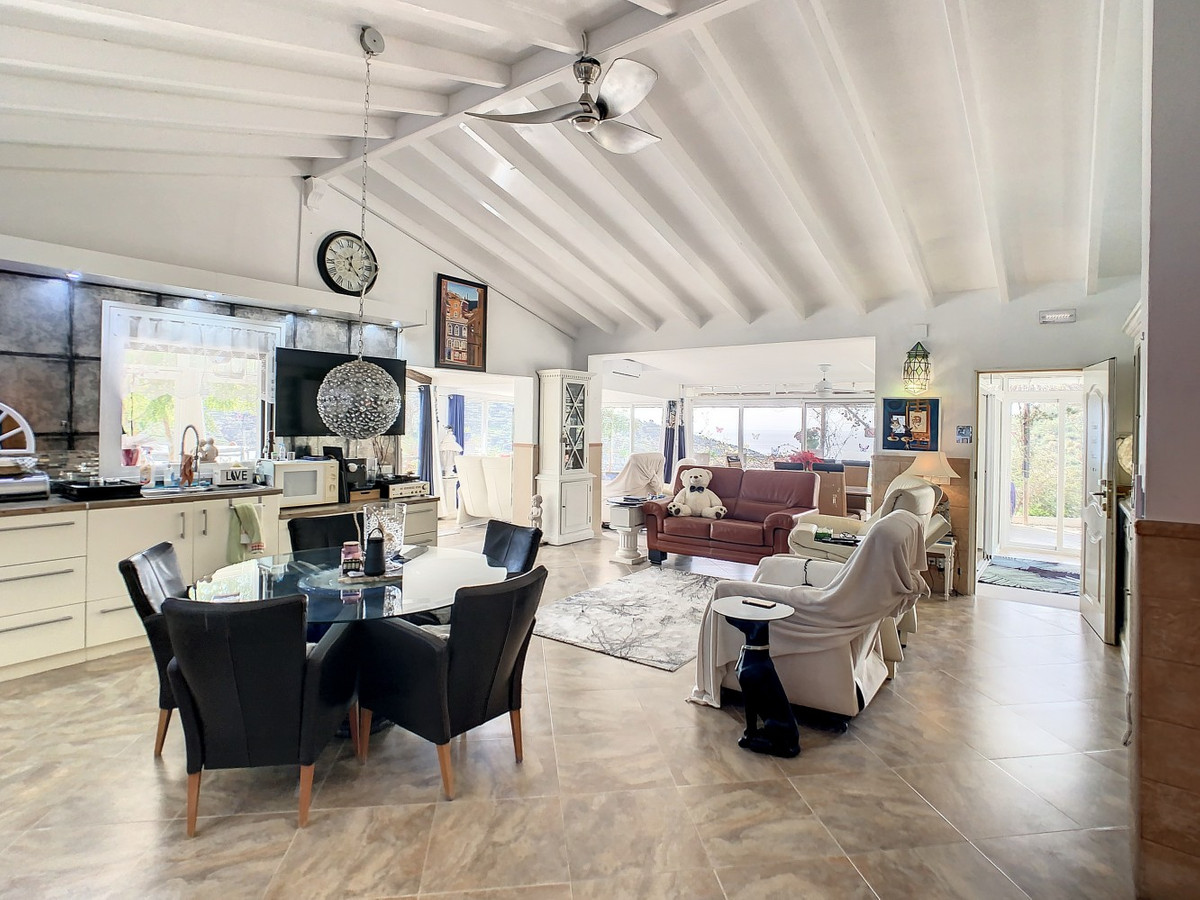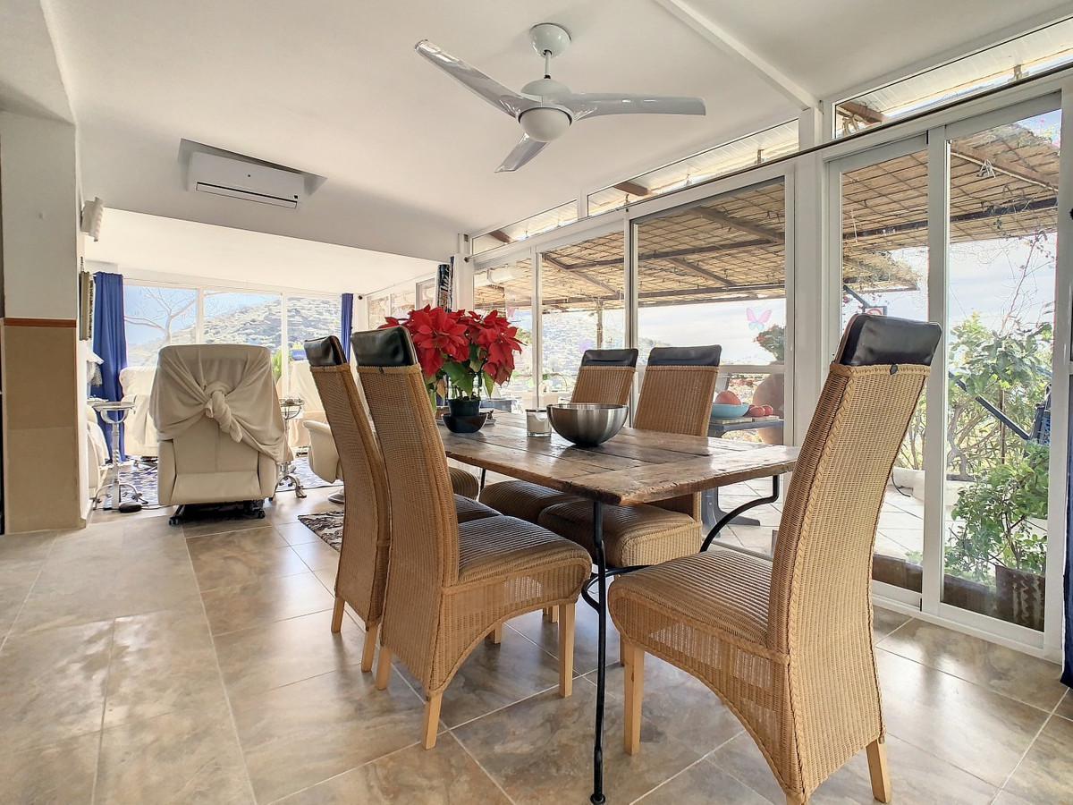 Vous rêvez d'une grande villa avec piscine chauffée, nichée au sommet d'une montagne, en pleine nature et offrant une vue imprenable sur la vallée, la mer et le village d'Arenas ? Cette propriété pourrait bien être celle qu'il vous faut. À l'entrée, vous trouverez un parking couvert pouvant accueillir au moins six voitures et un atelier. De là, une vaste véranda entoure la maison. De plain-pied, au cœur de la villa, se trouvent un bureau, trois chambres, deux salles de bains (dont une attenante), deux cuisines, un espace barbecue extérieur, un grand séjour/salle à manger et plusieurs espaces de détente avec vue sur l'extérieur grâce à des portes-fenêtres. Autour de la véranda, de nombreux espaces intimes pour se détendre et bronzer invitent à la rêverie. Vous y trouverez également la piscine chauffée, des palmiers, une chambre extérieure et un passage menant à de charmants bancs offrant une vue imprenable sur les environs. Une cuisine d'été complète ce bien. Cette villa aux finitions soignées est entièrement équipée. Idéale pour les amoureux du confort et de l'intimité, cette propriété de rêve vous sera bientôt présentée, en personne ou virtuellement. Car ce lieu est unique, à l'image de notre Axarquía. En Andalousie. Sur la Costa del Sol. Ici, la vie est belle et ensoleillée…