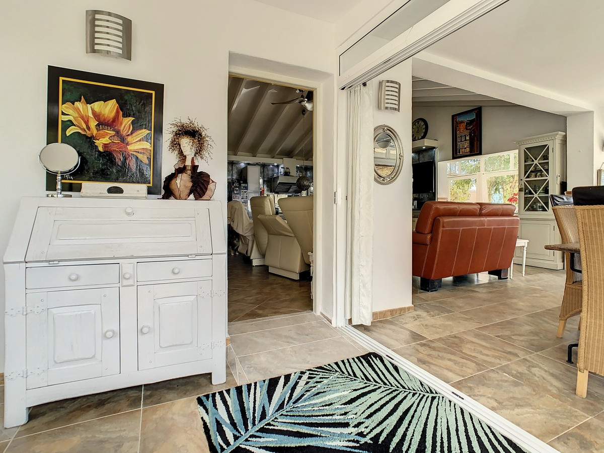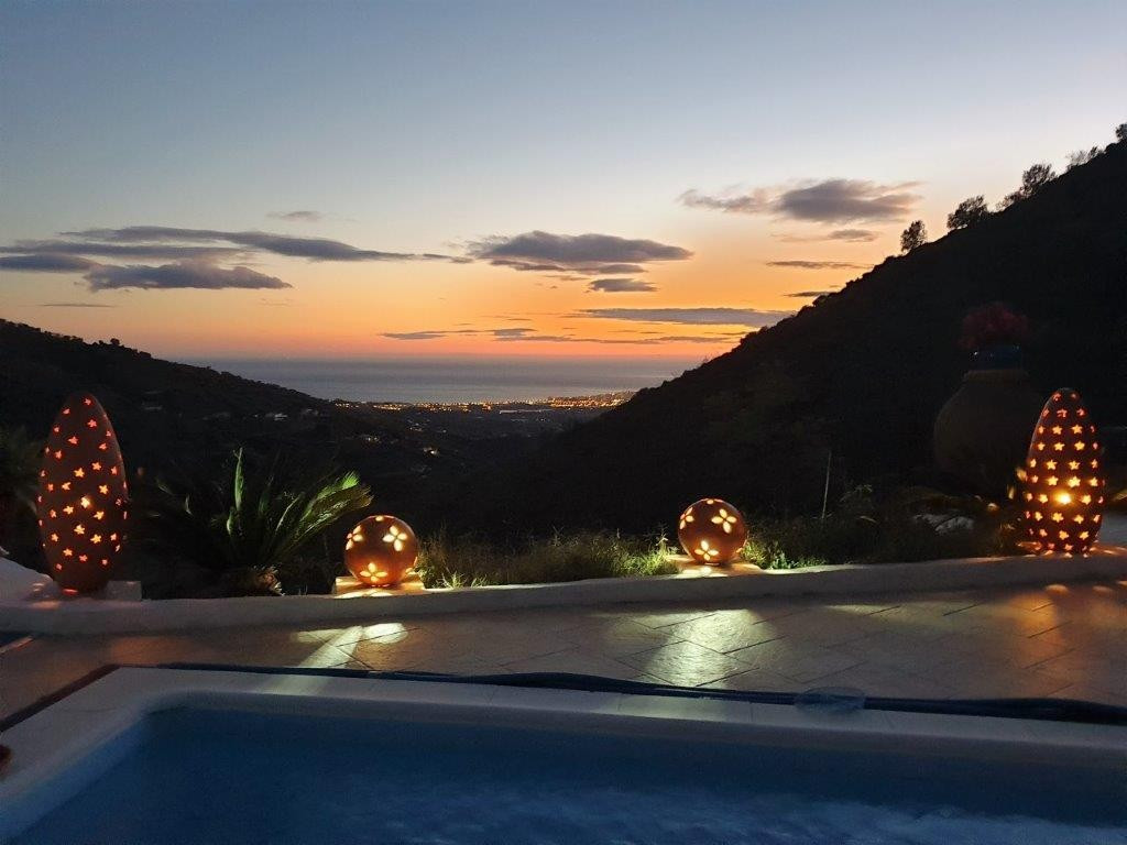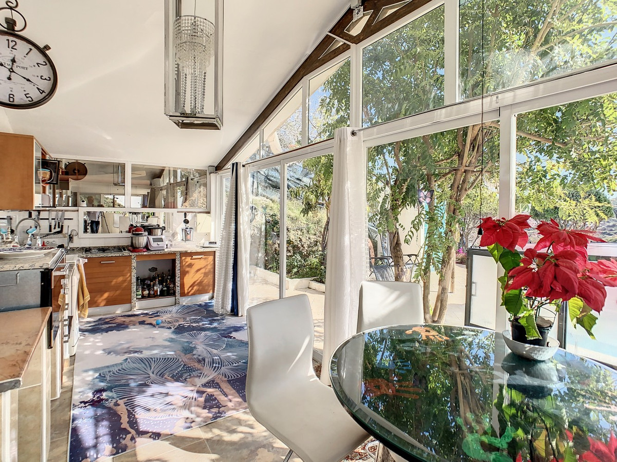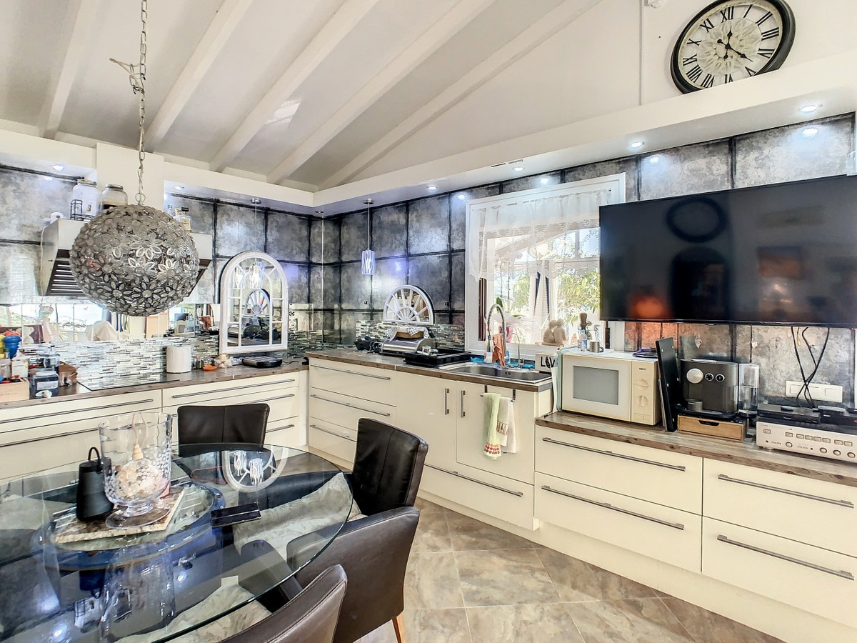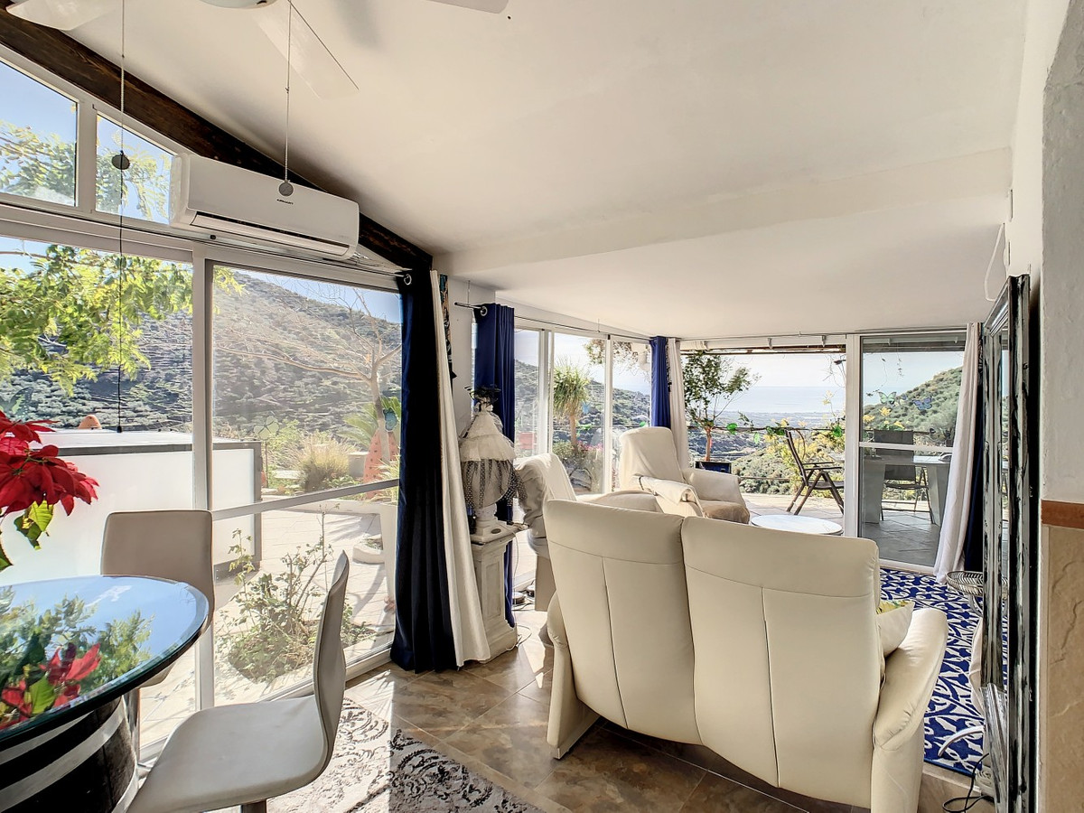 Vous rêvez d'une grande villa avec piscine chauffée, nichée au sommet d'une montagne, en pleine nature et offrant une vue imprenable sur la vallée, la mer et le village d'Arenas ? Cette propriété pourrait bien être celle qu'il vous faut. À l'entrée, vous trouverez un parking couvert pouvant accueillir au moins six voitures et un atelier. De là, une vaste véranda entoure la maison. De plain-pied, au cœur de la villa, se trouvent un bureau, trois chambres, deux salles de bains (dont une attenante), deux cuisines, un espace barbecue extérieur, un grand séjour/salle à manger et plusieurs espaces de détente avec vue sur l'extérieur grâce à des portes-fenêtres. Autour de la véranda, de nombreux espaces intimes pour se détendre et bronzer invitent à la rêverie. Vous y trouverez également la piscine chauffée, des palmiers, une chambre extérieure et un passage menant à de charmants bancs offrant une vue imprenable sur les environs. Une cuisine d'été complète ce bien. Cette villa aux finitions soignées est entièrement équipée. Idéale pour les amoureux du confort et de l'intimité, cette propriété de rêve vous sera bientôt présentée, en personne ou virtuellement. Car ce lieu est unique, à l'image de notre Axarquía. En Andalousie. Sur la Costa del Sol. Ici, la vie est belle et ensoleillée…