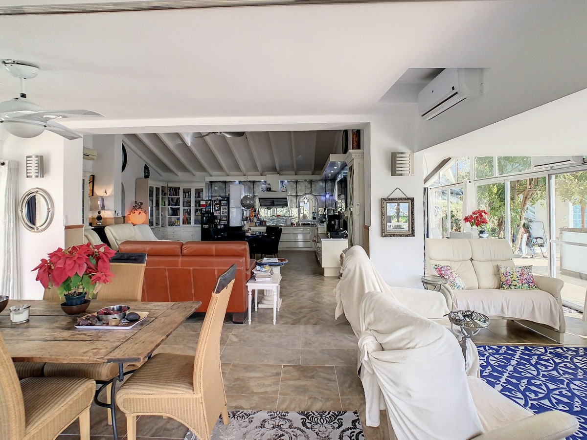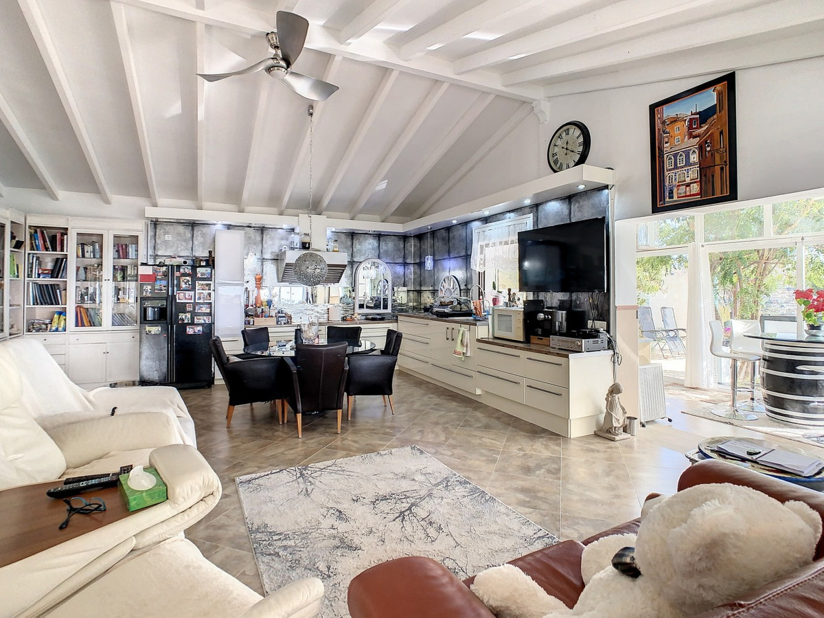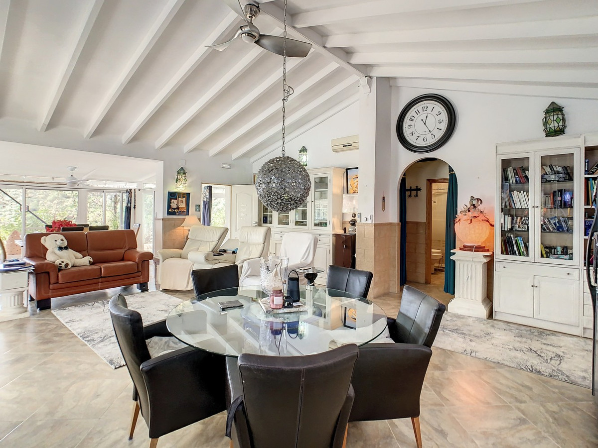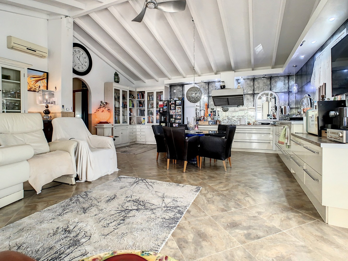 Vous rêvez d'une grande villa avec piscine chauffée, nichée au sommet d'une montagne, en pleine nature et offrant une vue imprenable sur la vallée, la mer et le village d'Arenas ? Cette propriété pourrait bien être celle qu'il vous faut. À l'entrée, vous trouverez un parking couvert pouvant accueillir au moins six voitures et un atelier. De là, une vaste véranda entoure la maison. De plain-pied, au cœur de la villa, se trouvent un bureau, trois chambres, deux salles de bains (dont une attenante), deux cuisines, un espace barbecue extérieur, un grand séjour/salle à manger et plusieurs espaces de détente avec vue sur l'extérieur grâce à des portes-fenêtres. Autour de la véranda, de nombreux espaces intimes pour se détendre et bronzer invitent à la rêverie. Vous y trouverez également la piscine chauffée, des palmiers, une chambre extérieure et un passage menant à de charmants bancs offrant une vue imprenable sur les environs. Une cuisine d'été complète ce bien. Cette villa aux finitions soignées est entièrement équipée. Idéale pour les amoureux du confort et de l'intimité, cette propriété de rêve vous sera bientôt présentée, en personne ou virtuellement. Car ce lieu est unique, à l'image de notre Axarquía. En Andalousie. Sur la Costa del Sol. Ici, la vie est belle et ensoleillée…
