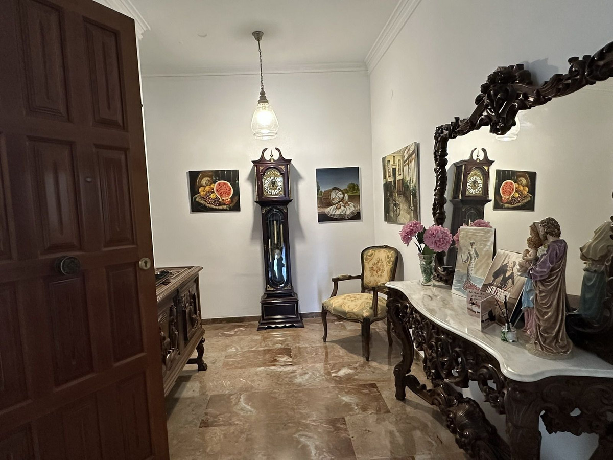 Au rez-de-chaussée, on trouve un grand garage, des toilettes pour invités et une pièce actuellement aménagée en cave à vin, idéale pour les réunions de famille ou le stockage de pièces spéciales. De là, on accède à un magnifique patio intérieur, partiellement couvert et partiellement à ciel ouvert, qui apporte lumière naturelle et ventilation à la maison.