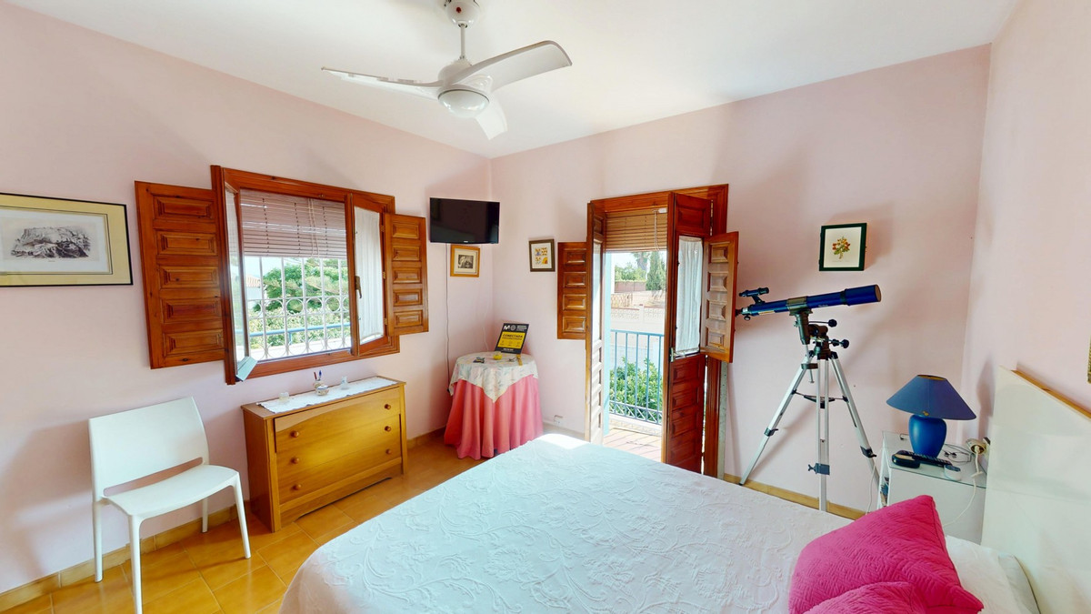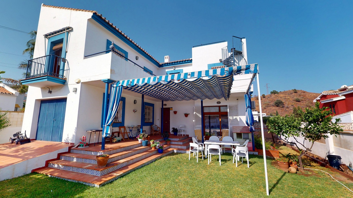 Cette magnifique villa espagnole s'étend sur deux étages et comprend trois chambres, dont une suite parentale impressionnante, et deux salles de bains. Elle allie le charme andalou traditionnel au confort moderne. Son design d'inspiration méditerranéenne se reflète dans les sols en terre cuite, les chaleureux éléments en bois et les espaces lumineux et aérés. Le séjour bénéficie d'une configuration unique en demi-niveaux avec des frises de carrelage décoratives, une cheminée accueillante et des étagères intégrées. Un élégant escalier en bois mène à l'étage, tandis que la cuisine ouverte communique harmonieusement avec le séjour, idéale pour la vie de famille ou pour recevoir. Les chambres sont spacieuses et disposent de placards intégrés pour un rangement optimal. De grandes fenêtres avec volets en bois traditionnels laissent entrer la lumière naturelle et offrent des vues pittoresques sur les environs. Les salles de bains sont pleines de caractère, l'une d'elles étant dotée d'un sol à damier bleu et blanc avec des frises de carrelage décoratives. À l'extérieur, la villa offre un jardin privé avec piscine, un espace détente idéal pour se relaxer, un garage et une terrasse sur le toit avec une vue imprenable, parfaite pour profiter du climat et des paysages de la Costa del Sol. Située à Chilches, cette propriété est idéale comme résidence principale, résidence secondaire ou investissement locatif. Nous sommes ravis de pouvoir vous présenter prochainement ce bien d'exception, en personne ou virtuellement. Car ce monde est unique, à l'image de notre Axarquía. En Andalousie. Sur la Costa del Sol. Ici, la vie est belle et ensoleillée…