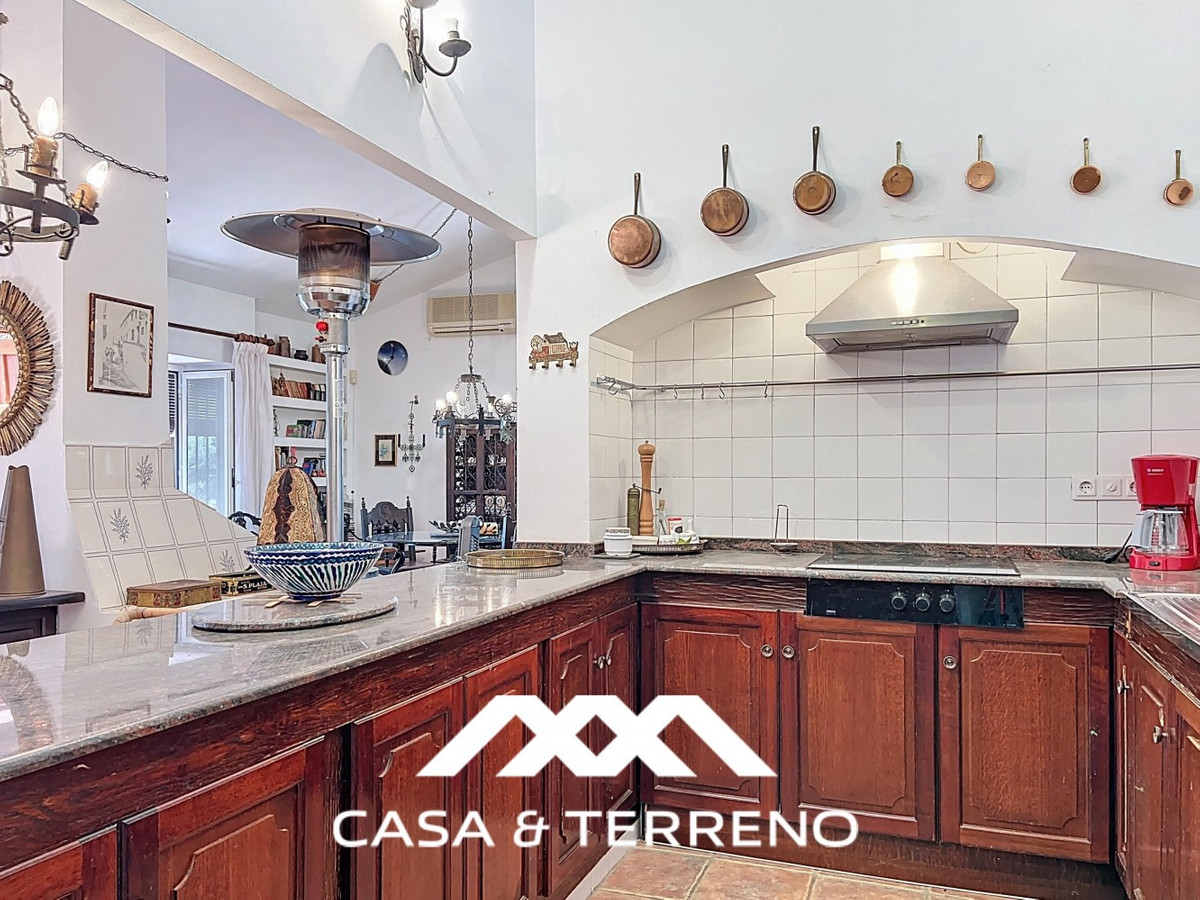 Située entre Frigiliana et Nerja, cette charmante propriété de style andalou allie une maison principale confortable à des extérieurs exceptionnels, sur un terrain spectaculaire de plus de 6 000 m². Entourée de pins centenaires et offrant une intimité totale, cette finca donne l'impression de posséder sa propre forêt privée : calme, verdure et caractère. La maison principale, de plain-pied, propose trois chambres spacieuses et trois salles de bains bien équipées. La suite parentale, particulièrement généreuse, offre un espace idéal pour se détendre. Les sols en terre cuite et les étagères intégrées confèrent chaleur et authenticité à l'ensemble de la maison. Le séjour-salle à manger, lumineux et ouvert, avec ses hauts plafonds, ses grandes fenêtres et sa cheminée accueillante, communique harmonieusement avec la cuisine. Celle-ci est équipée de placards en bois rustiques, d'appareils électroménagers modernes, d'un garde-manger et de charmants détails, comme une rangée de casseroles en cuivre. Une terrasse couverte prolonge l'espace de vie vers l'extérieur, parfaite pour dîner à l'ombre ou se prélasser en toute saison. On trouve également un espace barbecue intégré et un bâtiment indépendant attenant à la maison principale, actuellement utilisé comme débarras. Mais ce qui rend cette propriété vraiment exceptionnelle, c'est son terrain impressionnant. Les pins offrent une ombre naturelle et une atmosphère apaisante, tandis que de petits escaliers en pierre serpentent à travers les terrasses, créant une sensation de refuge en pleine nature. Elle comprend également un court de tennis réglementaire, un garage et une magnifique piscine avec vue sur la mer, nichée au cœur des arbres. Attenante à la piscine, la maison d'hôtes propose un espace de vie ouvert avec chambre, kitchenette et salle de bains. Située juste en contrebas de la maison principale, elle garantit une intimité totale et est idéale pour les visites ou même la location. Une propriété unique pour ceux qui apprécient l'espace, la tranquillité et la nature, sans renoncer à la proximité des plages de Nerja et au charme du village blanc de Frigiliana. Une combinaison rare de confort intérieur et de magie extérieure dans l'un des quartiers les plus prisés de l'Axarquía. Nous sommes ravis de pouvoir vous présenter prochainement cette propriété, en personne ou par visite virtuelle. Car ce monde est unique, à l'image de notre Axarquía. En Andalousie. Sur la Costa del Sol. Ici, sous le soleil…