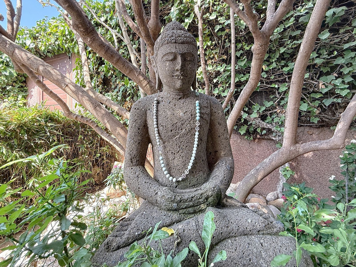 • Des jardins paysagers empreints de sérénité, agrémentés d'oliviers centenaires et de statues de Bouddha