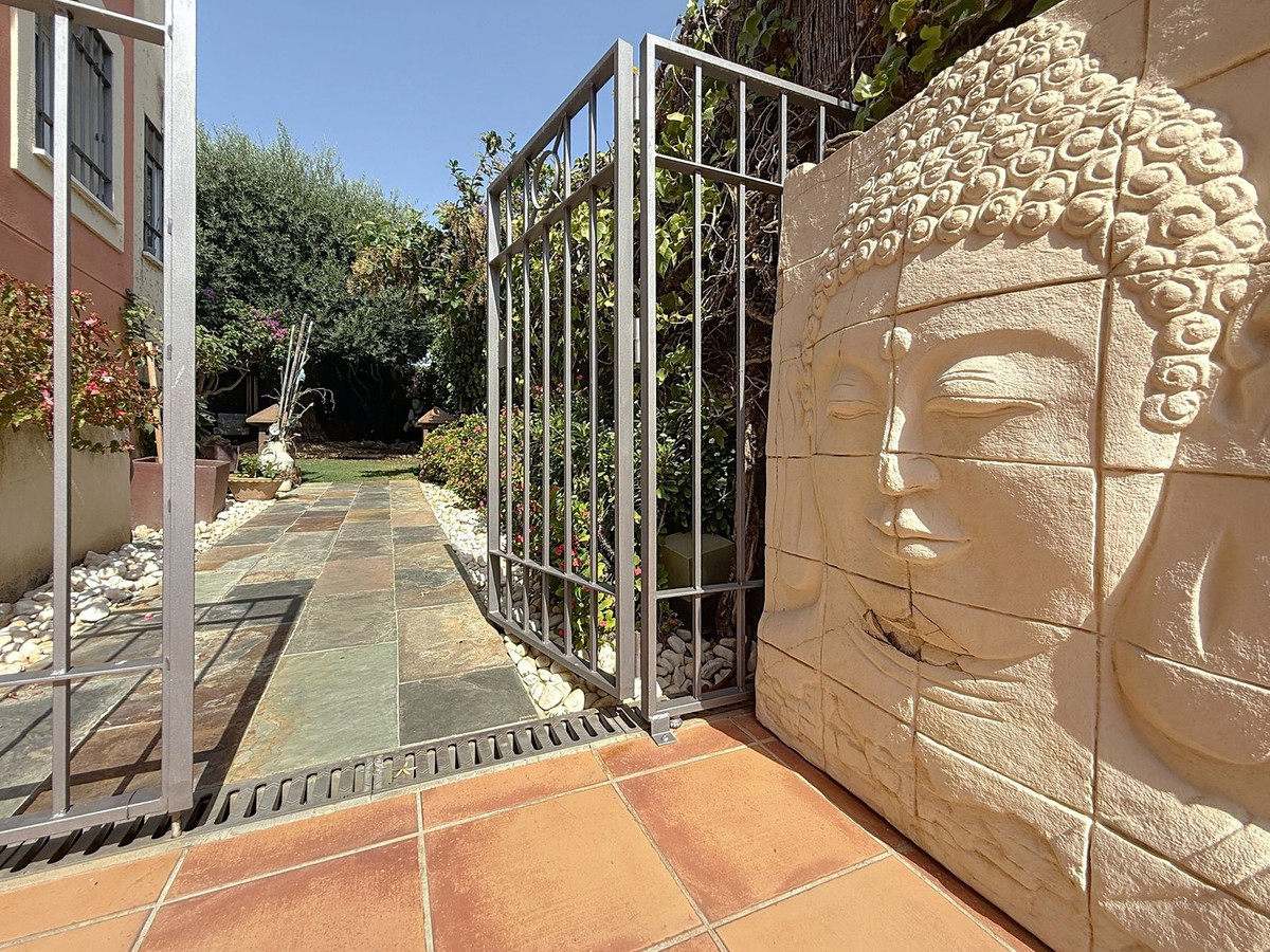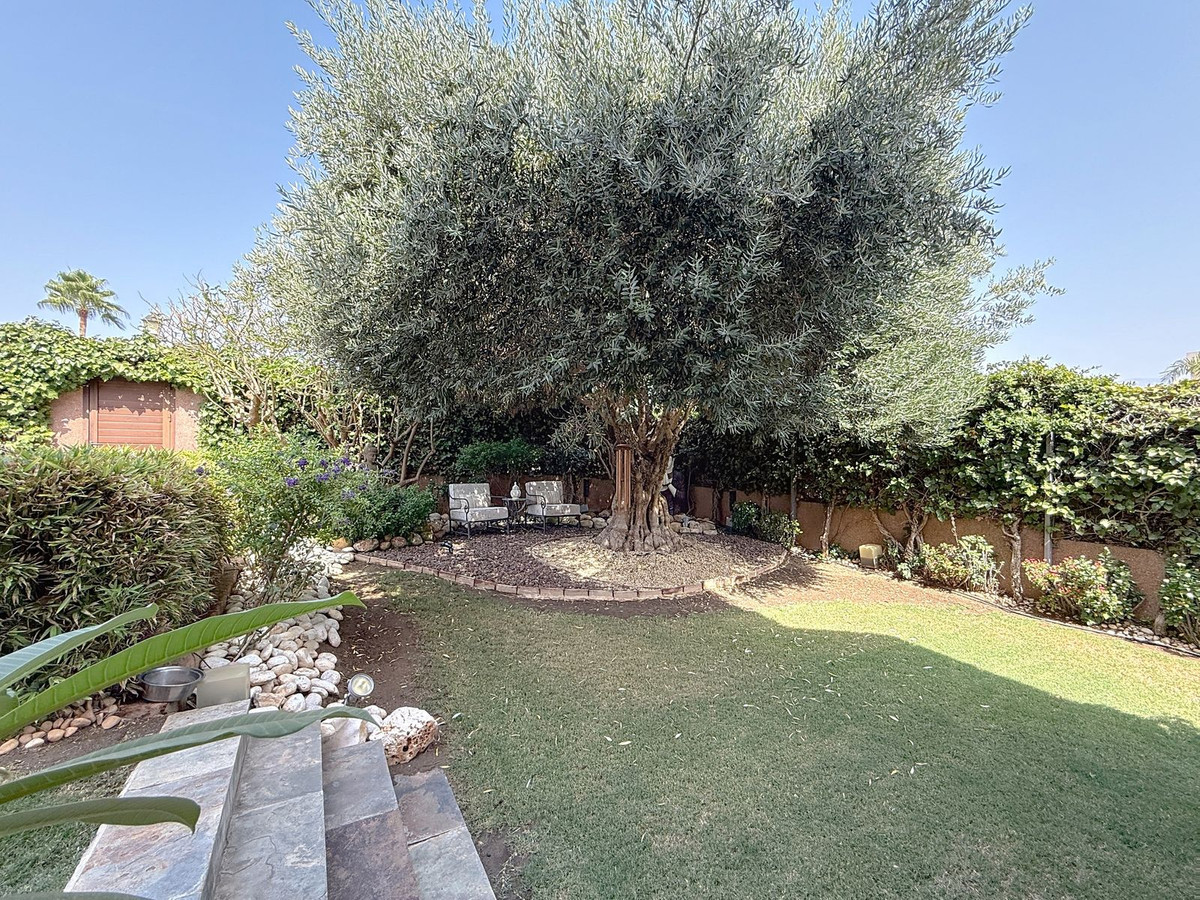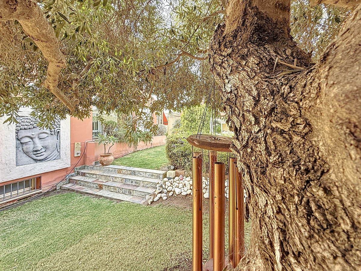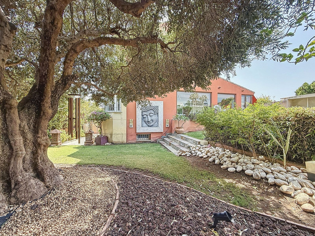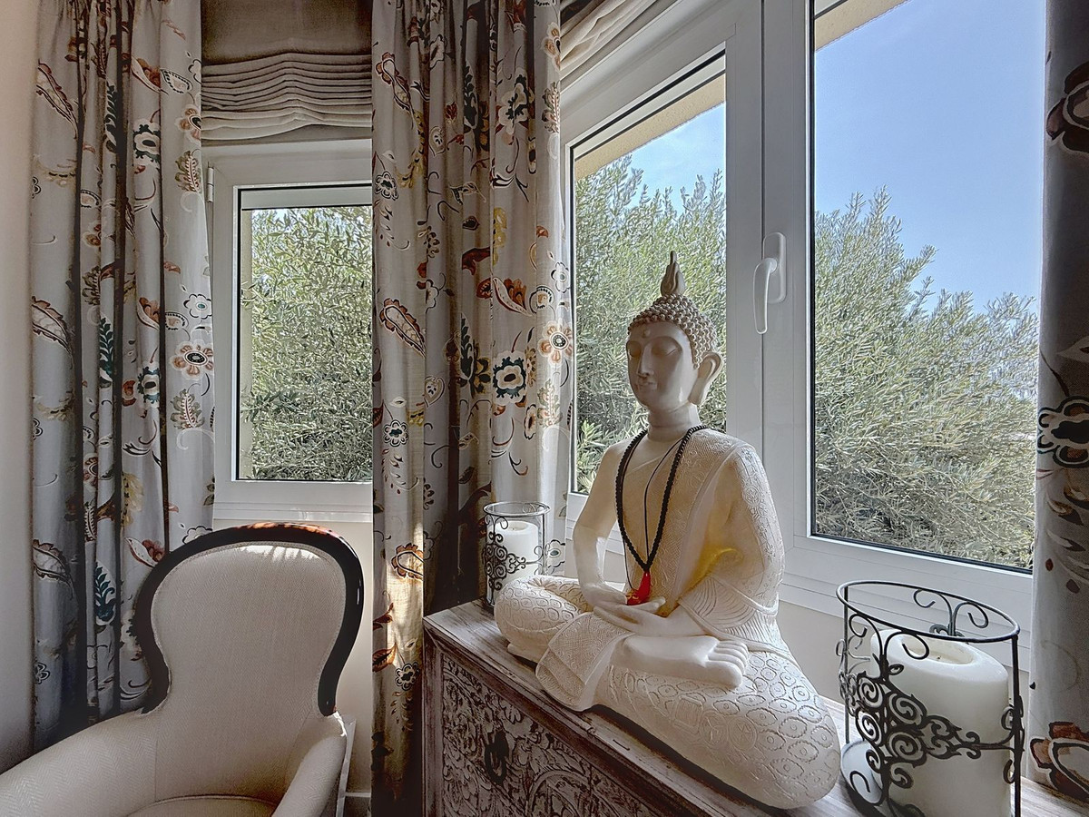 Dès que vous franchissez le portail privé, une sérénité absolue vous enveloppe. Les jardins forment un univers à part : un olivier centenaire veille sur la propriété, des statues de Bouddha invitent à la quiétude, des terrasses ombragées et des coins lounge intimes invitent à la détente. Au cœur de ce havre de paix se trouve une piscine de 6 x 4 m avec jacuzzi, nichée au cœur d'une végétation luxuriante et à l'ombre bienfaisante d'arbres matures – une oasis rare dans ce lieu privilégié.