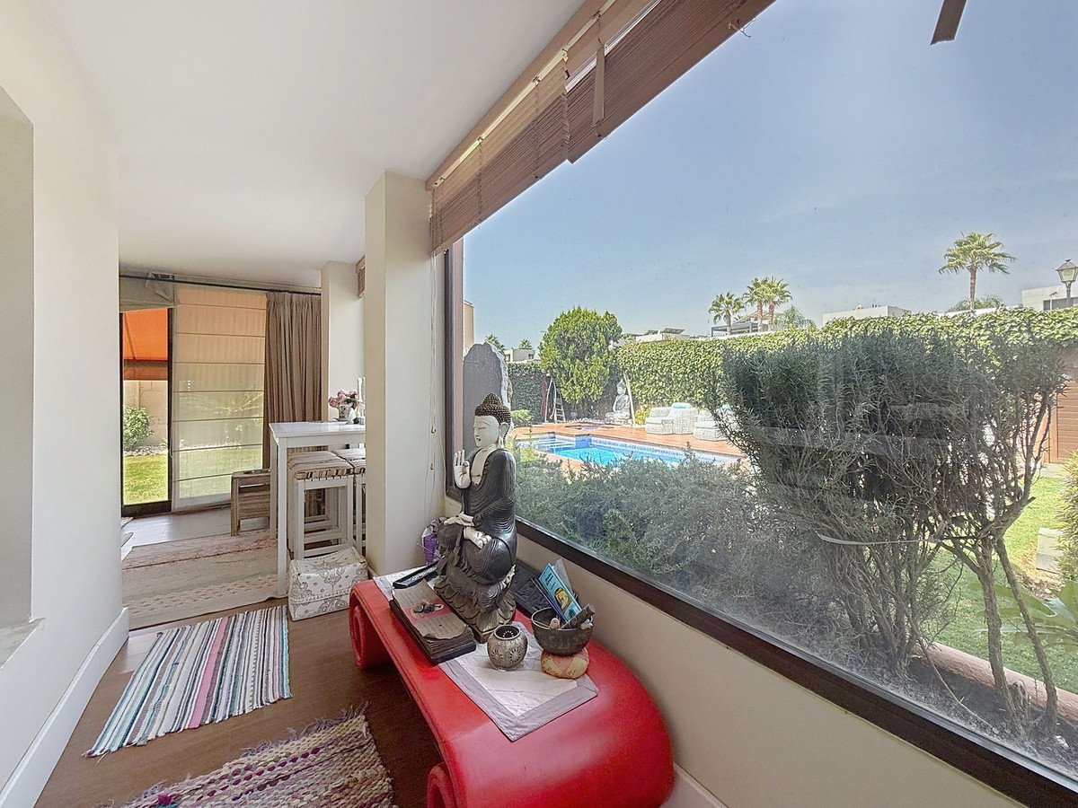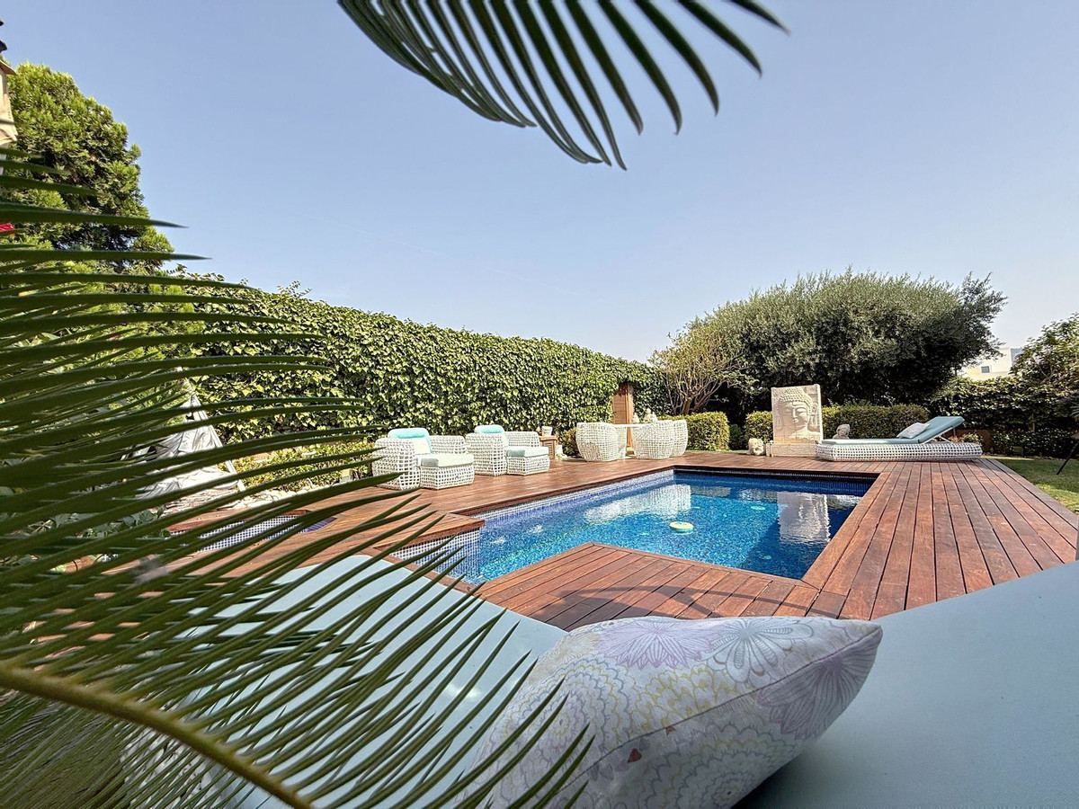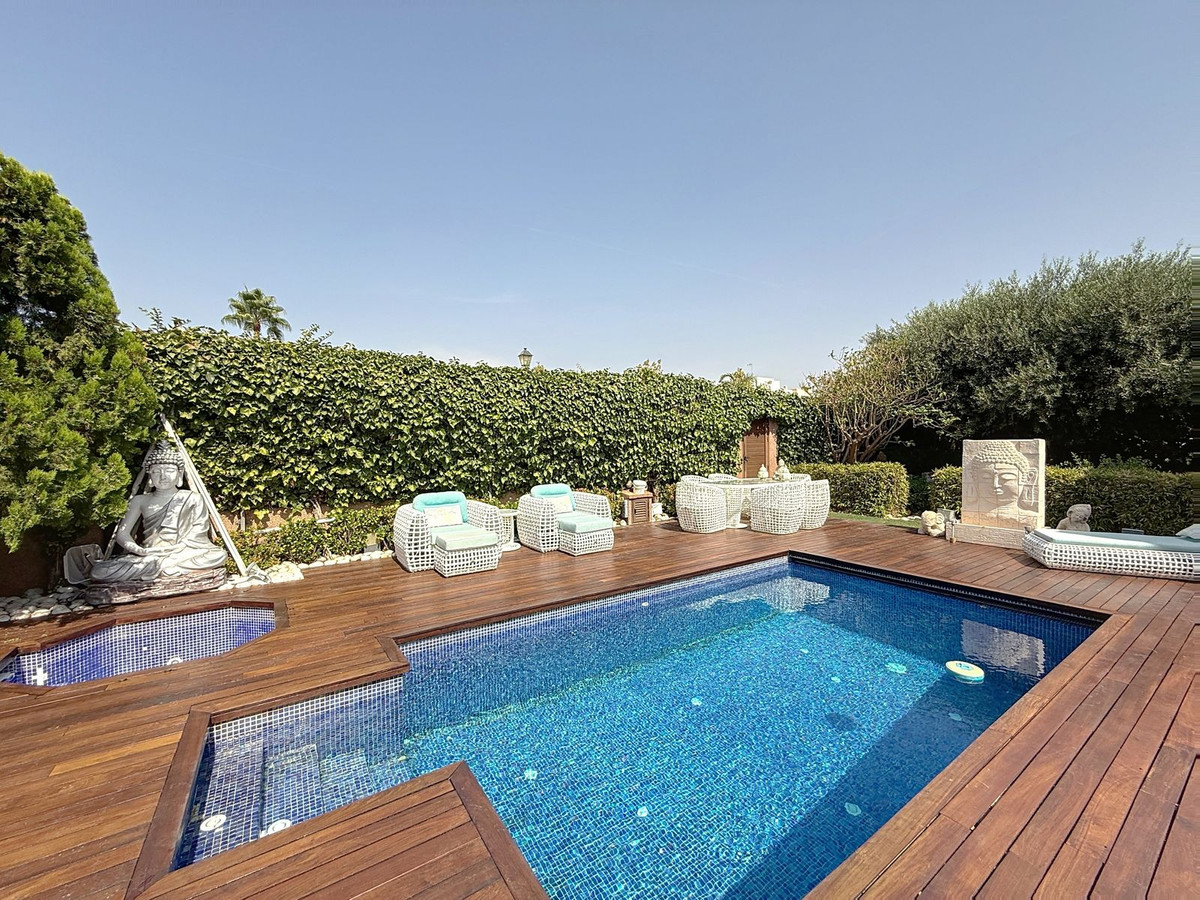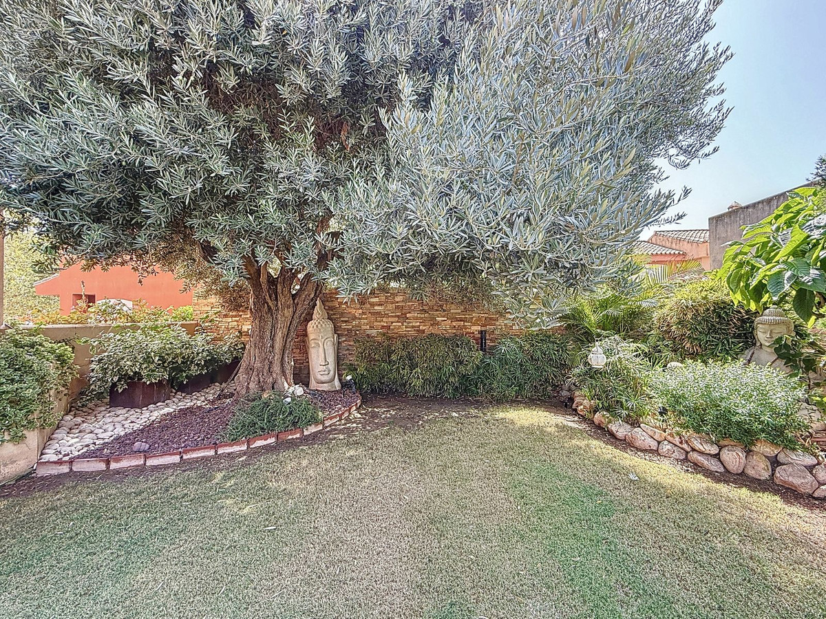 Dès que vous franchissez le portail privé, une sérénité absolue vous enveloppe. Les jardins forment un univers à part : un olivier centenaire veille sur la propriété, des statues de Bouddha invitent à la quiétude, des terrasses ombragées et des coins lounge intimes invitent à la détente. Au cœur de ce havre de paix se trouve une piscine de 6 x 4 m avec jacuzzi, nichée au cœur d'une végétation luxuriante et à l'ombre bienfaisante d'arbres matures – une oasis rare dans ce lieu privilégié.