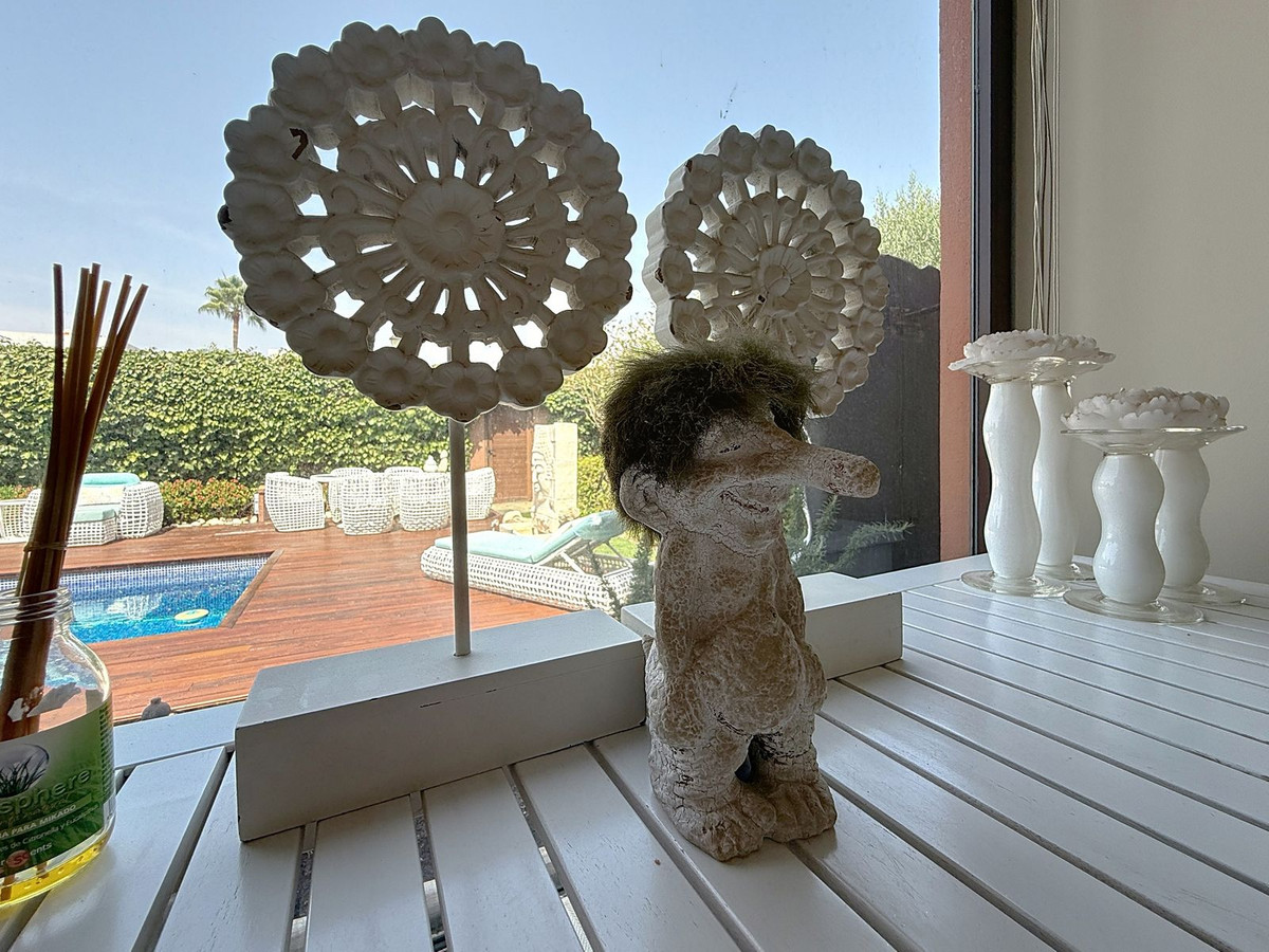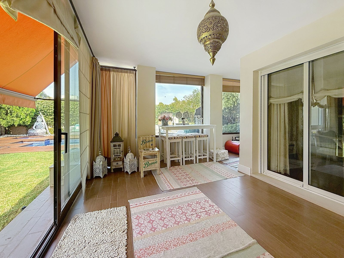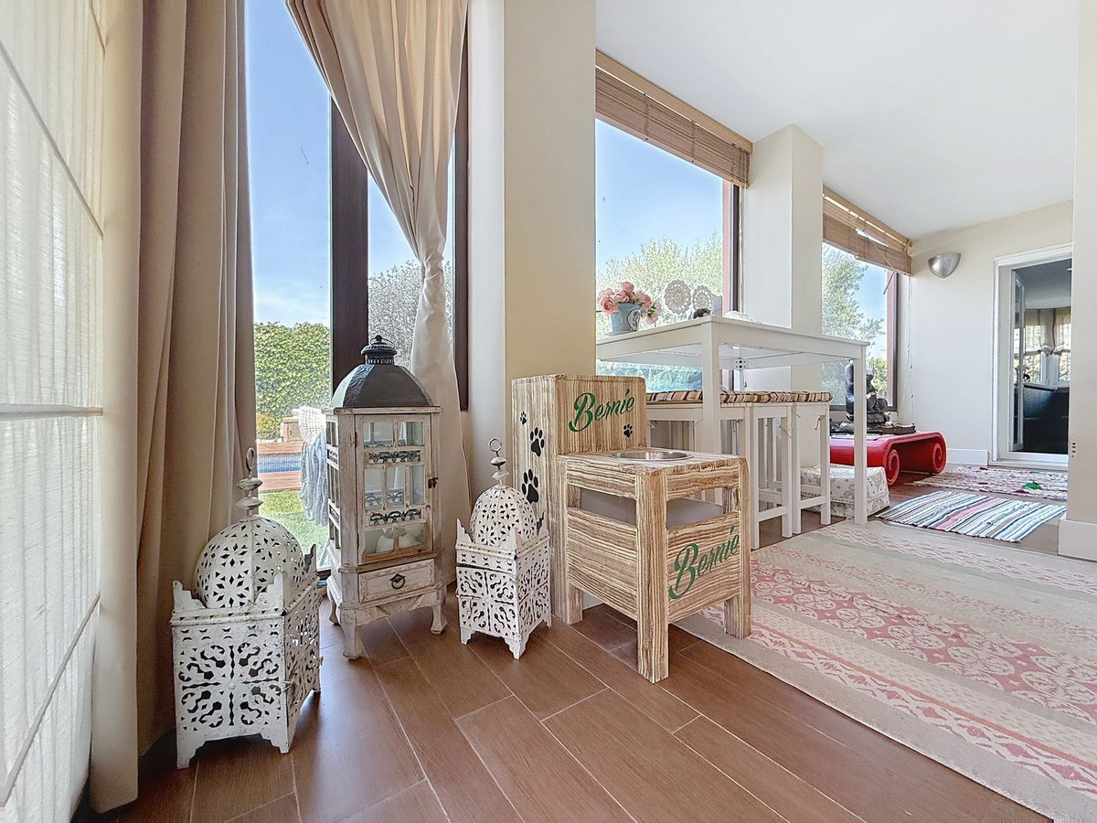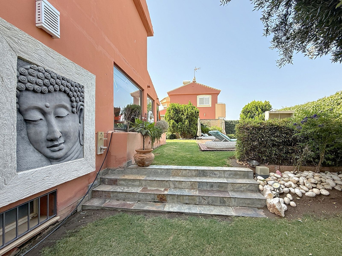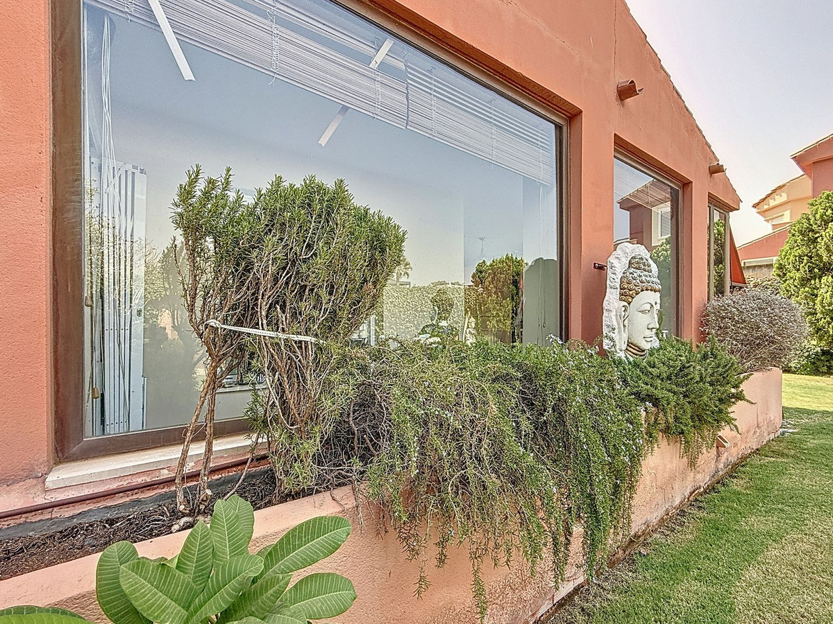 Dès que vous franchissez le portail privé, une sérénité absolue vous enveloppe. Les jardins forment un univers à part : un olivier centenaire veille sur la propriété, des statues de Bouddha invitent à la quiétude, des terrasses ombragées et des coins lounge intimes invitent à la détente. Au cœur de ce havre de paix se trouve une piscine de 6 x 4 m avec jacuzzi, nichée au cœur d'une végétation luxuriante et à l'ombre bienfaisante d'arbres matures – une oasis rare dans ce lieu privilégié.