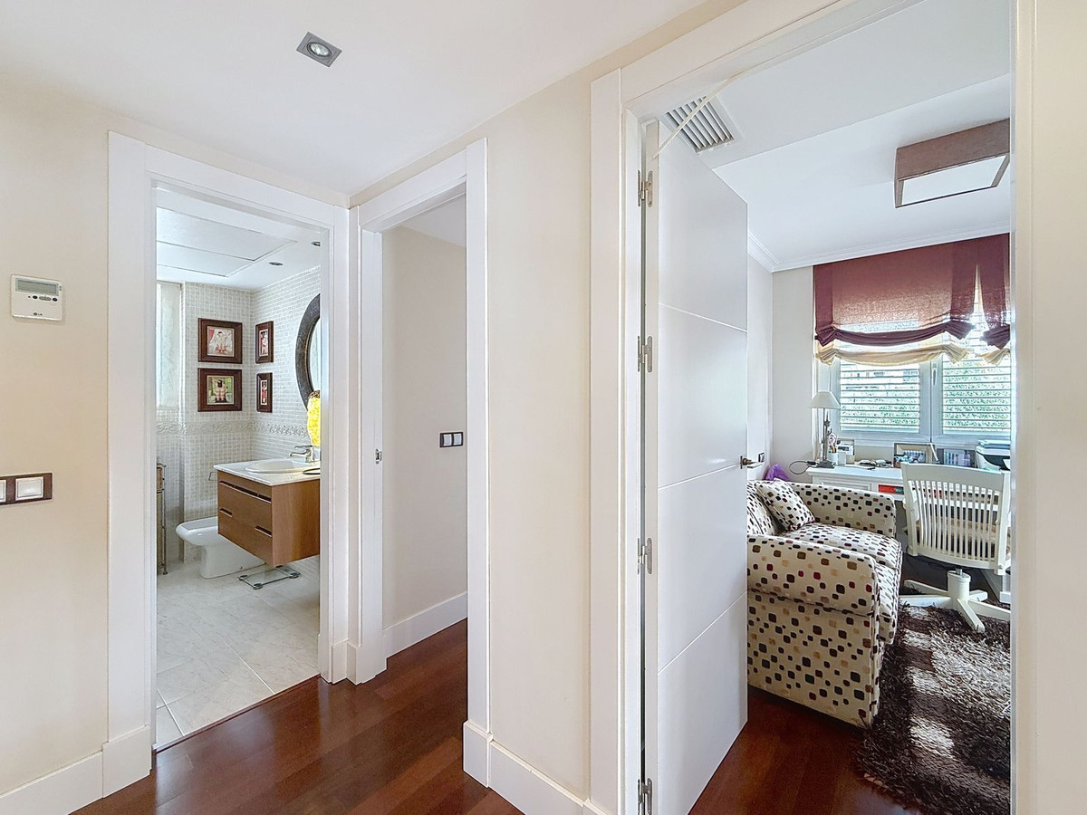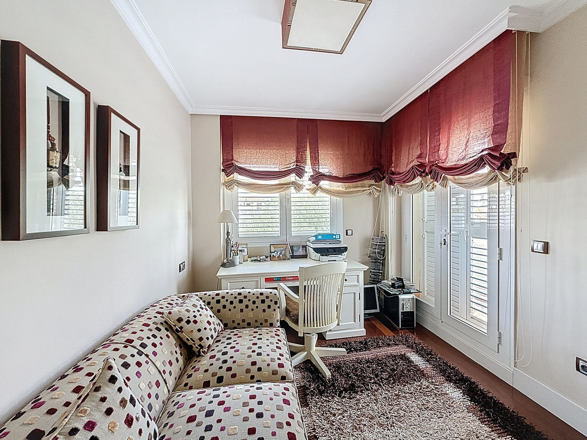 À l'étage, l'espace nuit comprend trois chambres spacieuses, dont une suite parentale paisible avec salle de bains privative. Une deuxième chambre d'amis avec sa propre salle de bains et une troisième chambre actuellement aménagée en bureau garantissent le confort de la famille et des visiteurs. Une pièce attenante, actuellement utilisée comme dressing, peut facilement être transformée en une quatrième chambre ou en un espace de détente privé.