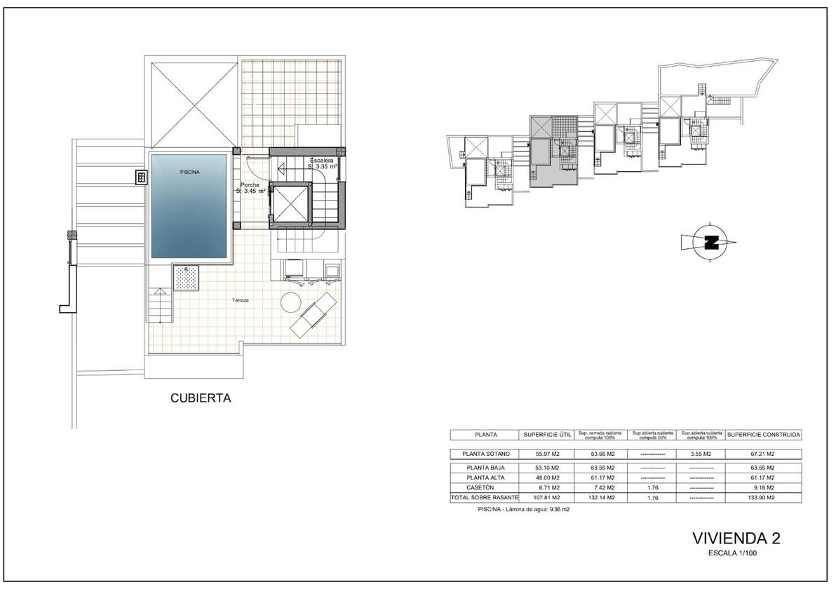Chaque villa s'étend sur trois niveaux et comprend 4 chambres, 3 salles de bains, un ascenseur privé, un garage et une terrasse sur le toit avec piscine privée, idéale pour profiter du soleil et d'une vue imprenable en toute intimité.
