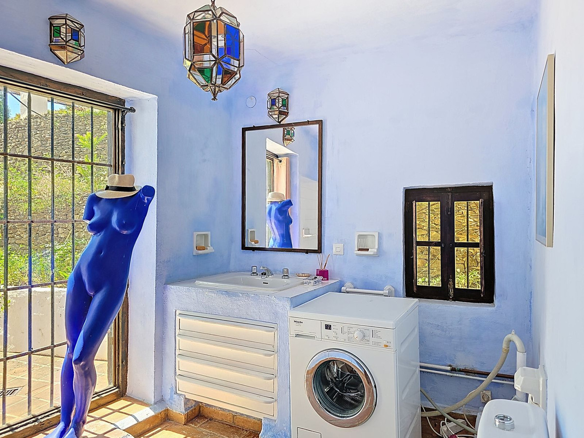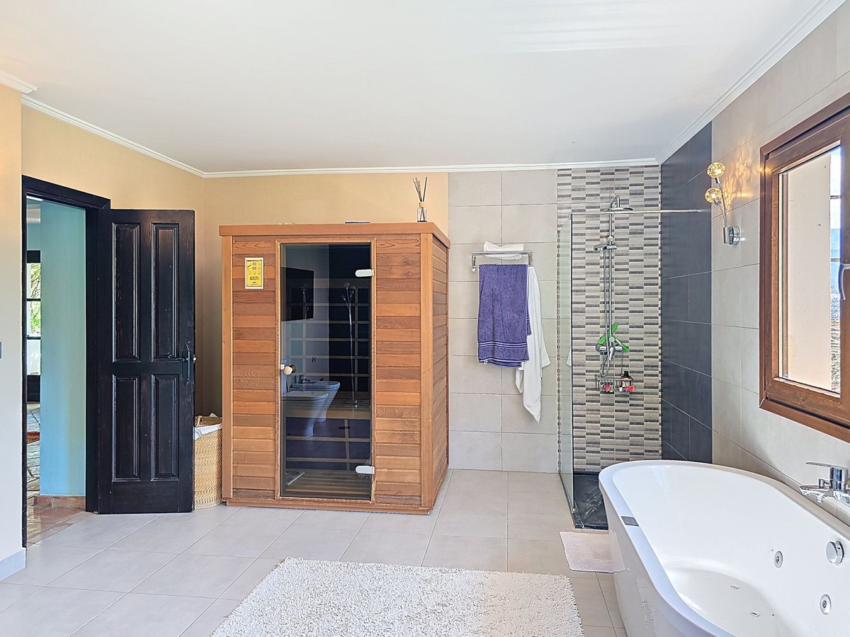 L'espace extérieur est un véritable paradis, avec plusieurs terrasses et une piscine privée rafraîchissante. Un atout unique est la cave à vin privée (bodega), située dans un espace souterrain naturel, où vous pourrez conserver vos vins préférés à température idéale. La villa allie durabilité et confort grâce à des panneaux solaires et une immense réserve d'eau de 160 000 litres.